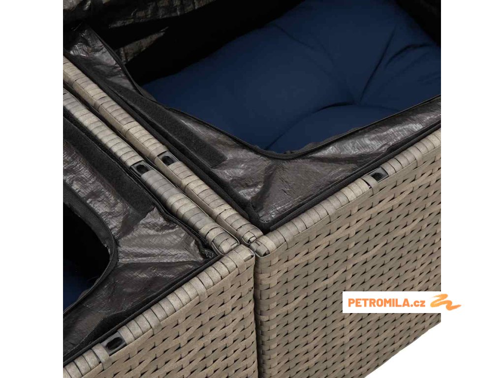 - Úložný prostor s voděodolným vakem: Každý zahradní sedací díl má úložný prostor pod sedákem, který je opatřen voděodolnou vložkou a poslouží vám k ukládání podušek, hraček a dalších věcí. Vnitřní vaky mají horní kryt a lze je bezpečně připevnit k sedákům pomocí suchého zipu, což zaručí větší stabilitu.