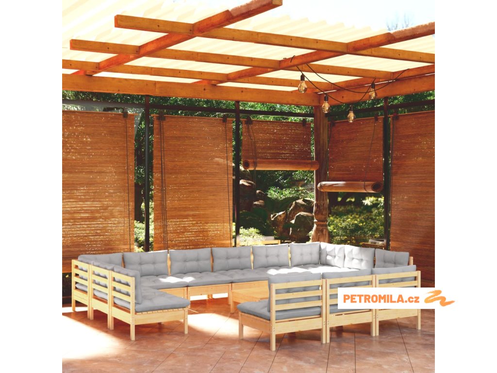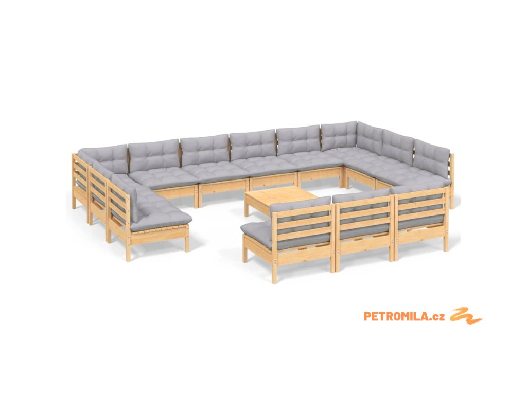 14dílná zahradní sedací souprava šedé podušky masivní borovice