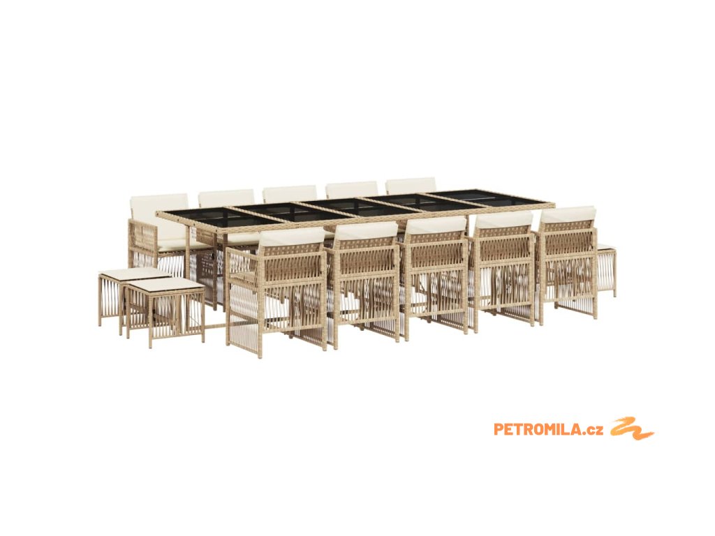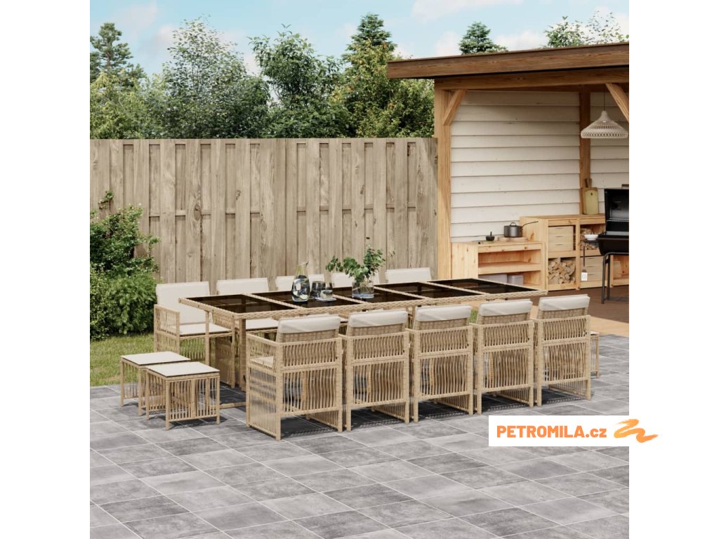 15dílný zahradní jídelní set s poduškami béžový polyratan
