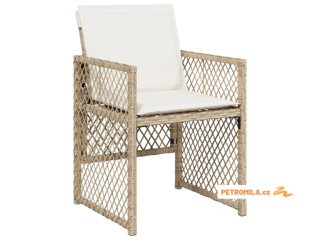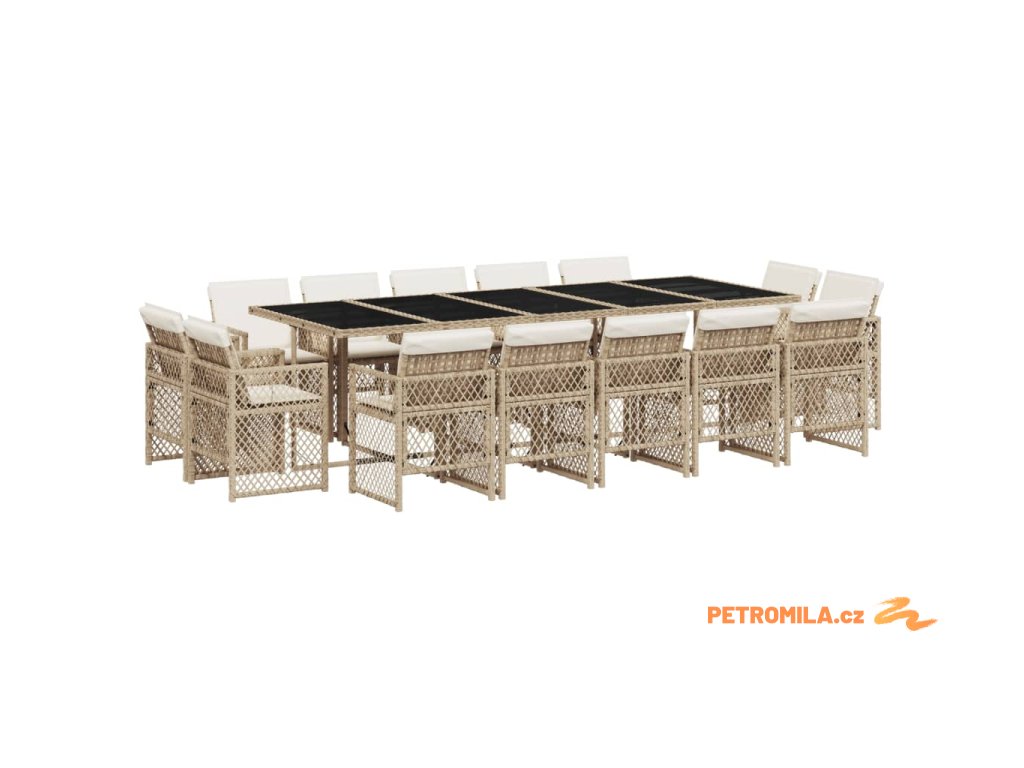 15dílný zahradní jídelní set s poduškami béžový polyratan