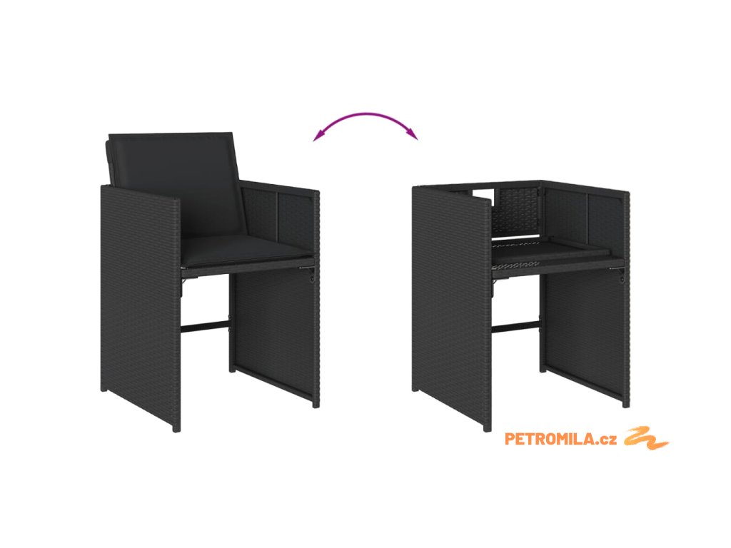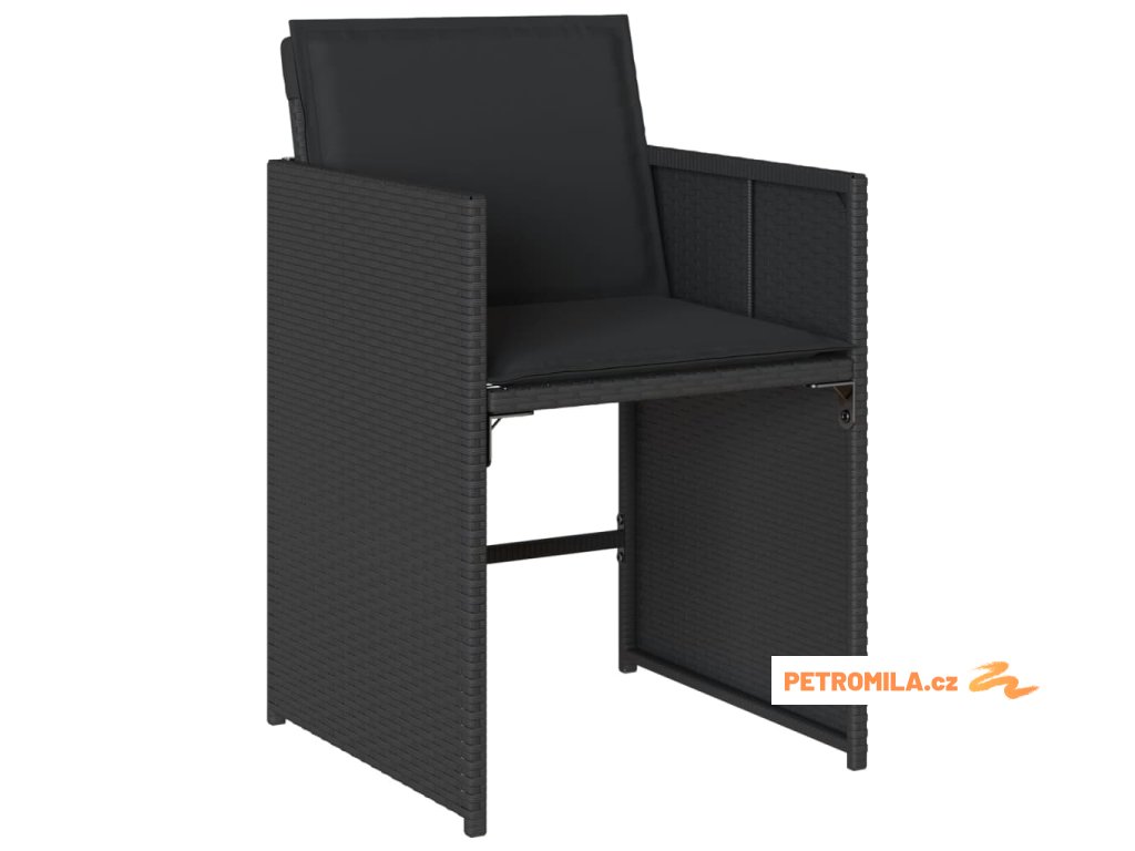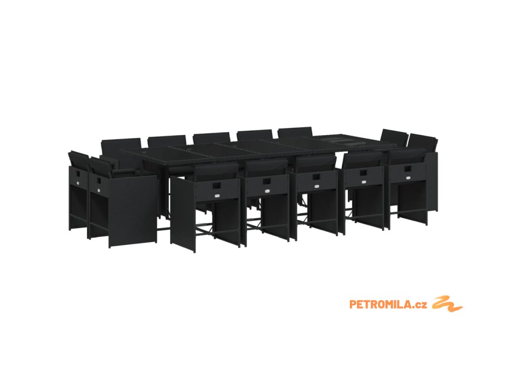 15dílný zahradní jídelní set s poduškami černý polyratan