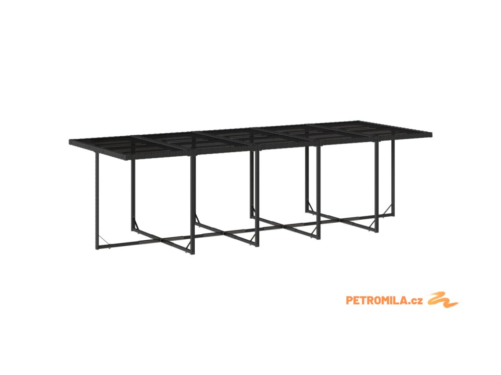 - Stabilní a snadno čistitelná stolní deska: Tento zahradní stůl má desku z tvrzeného skla, která je stabilní, odolná a snadno se čistí vlhkým hadříkem.