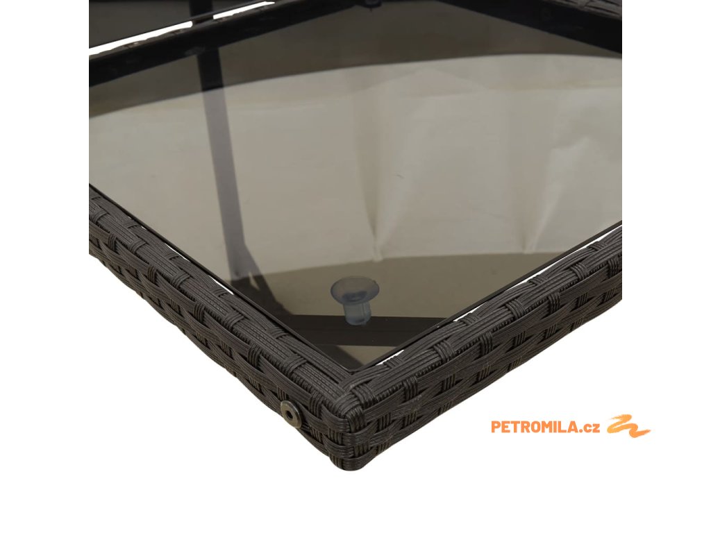 - Materiál: PE ratan, práškově lakovaná ocel, tvrzené sklo