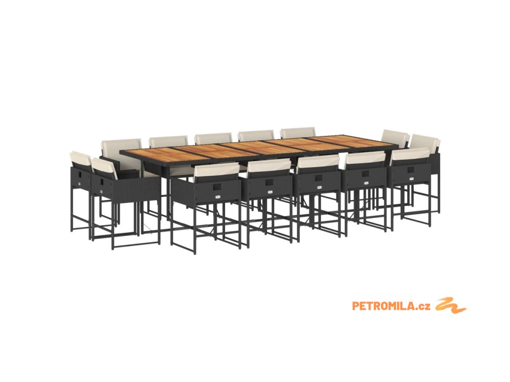 15dílný zahradní jídelní set s poduškami černý polyratan
