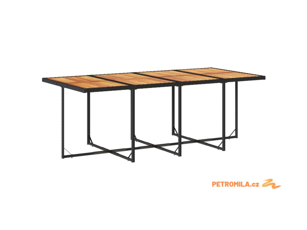 - Materiál: PE ratan, práškově lakovaná ocel, masivní akáciové dřevo s olejovou povrchovou úpravou