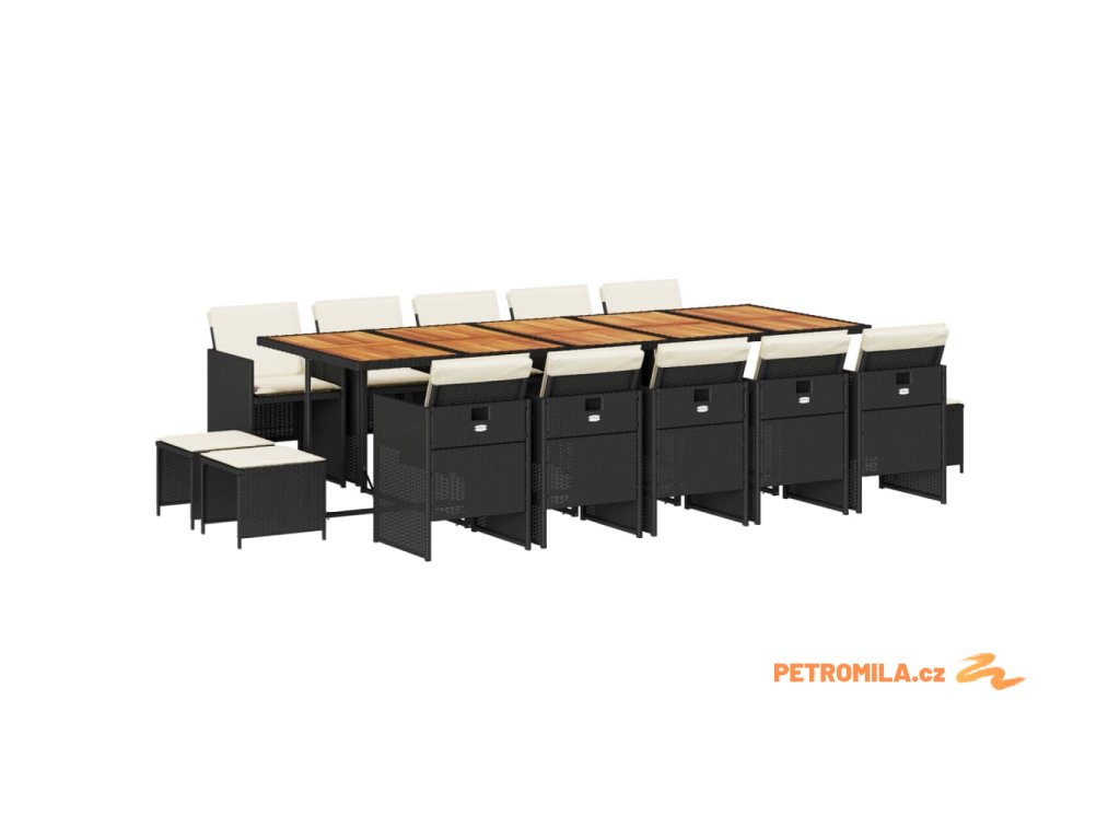 15dílný zahradní jídelní set s poduškami černý polyratan