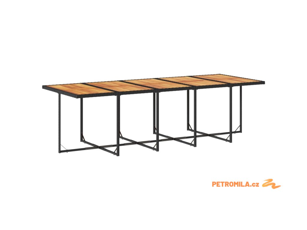 - Materiál: PE ratan, práškově lakovaná ocel, masivní akáciové dřevo s olejovou povrchovou úpravou