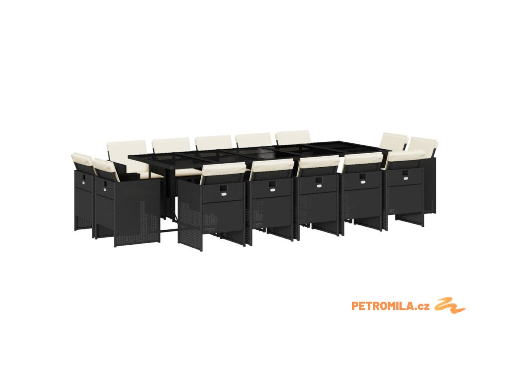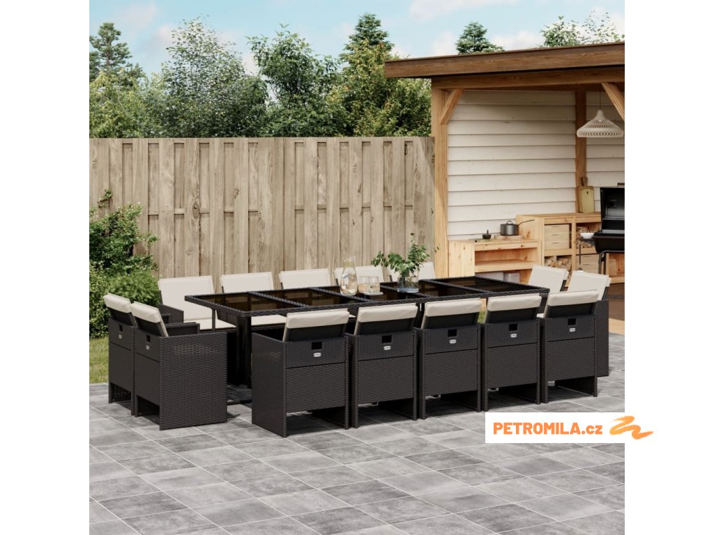 15dílný zahradní jídelní set s poduškami černý polyratan