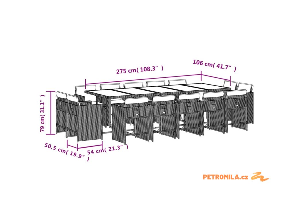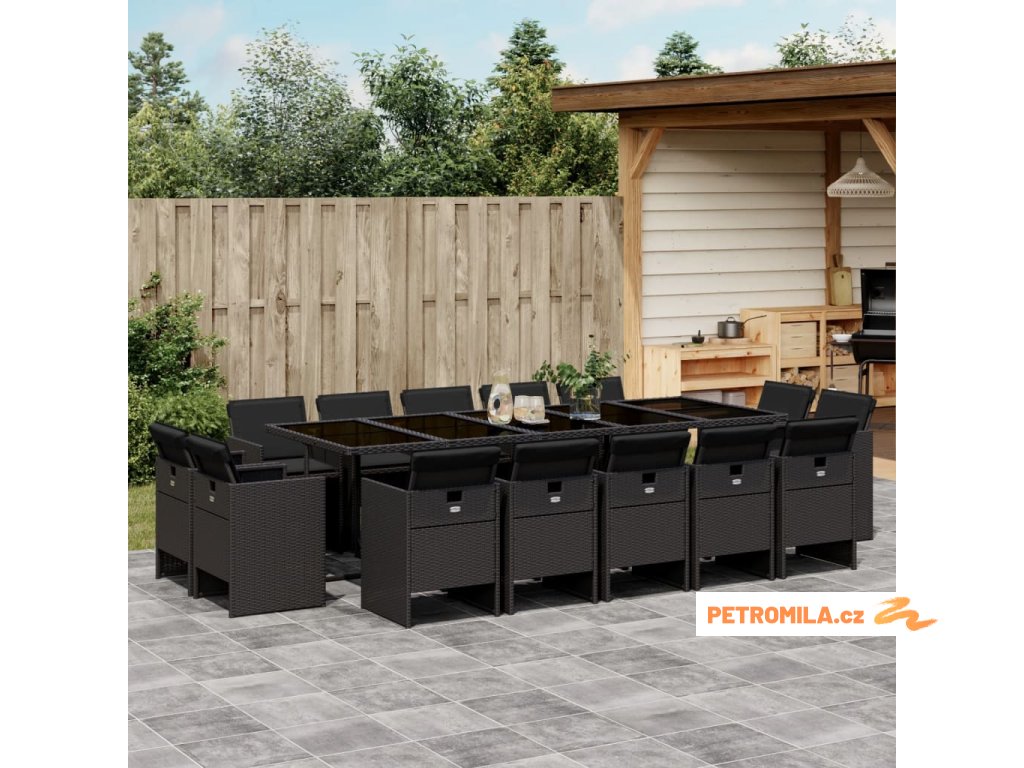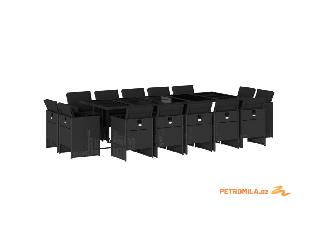 15dílný zahradní jídelní set s poduškami černý polyratan