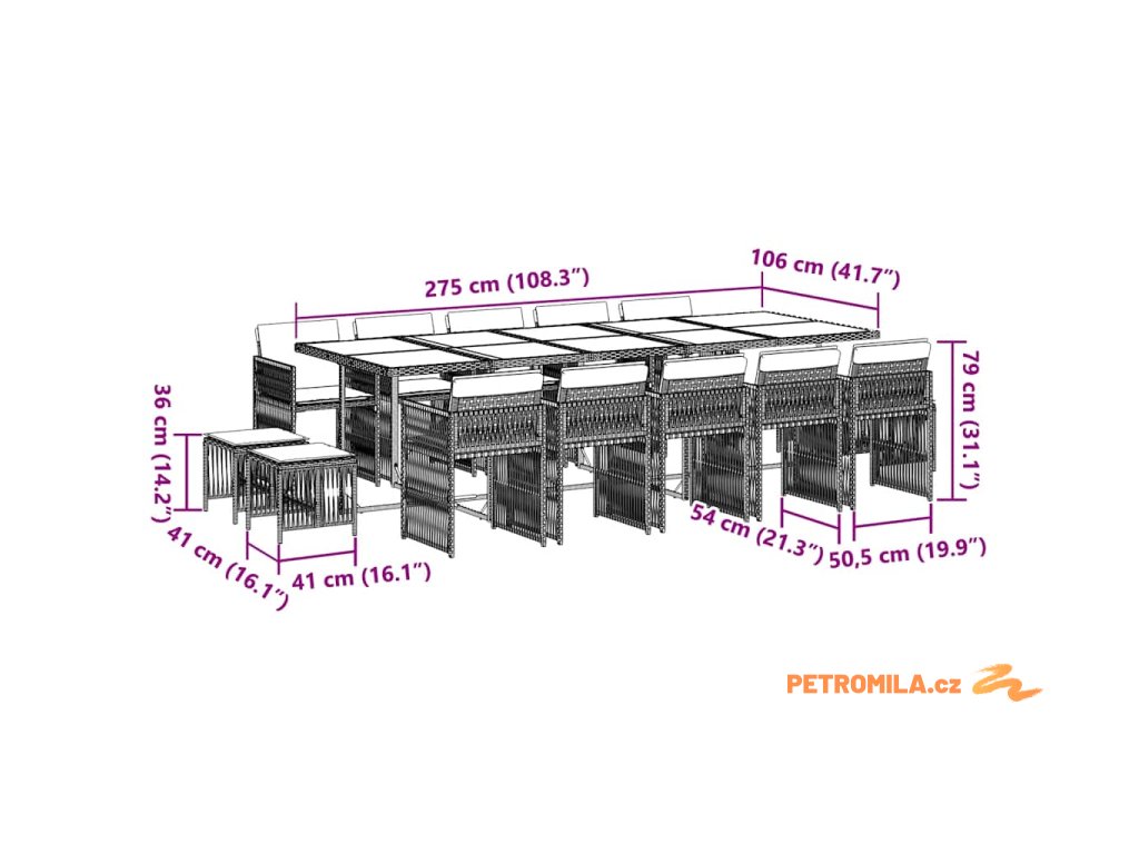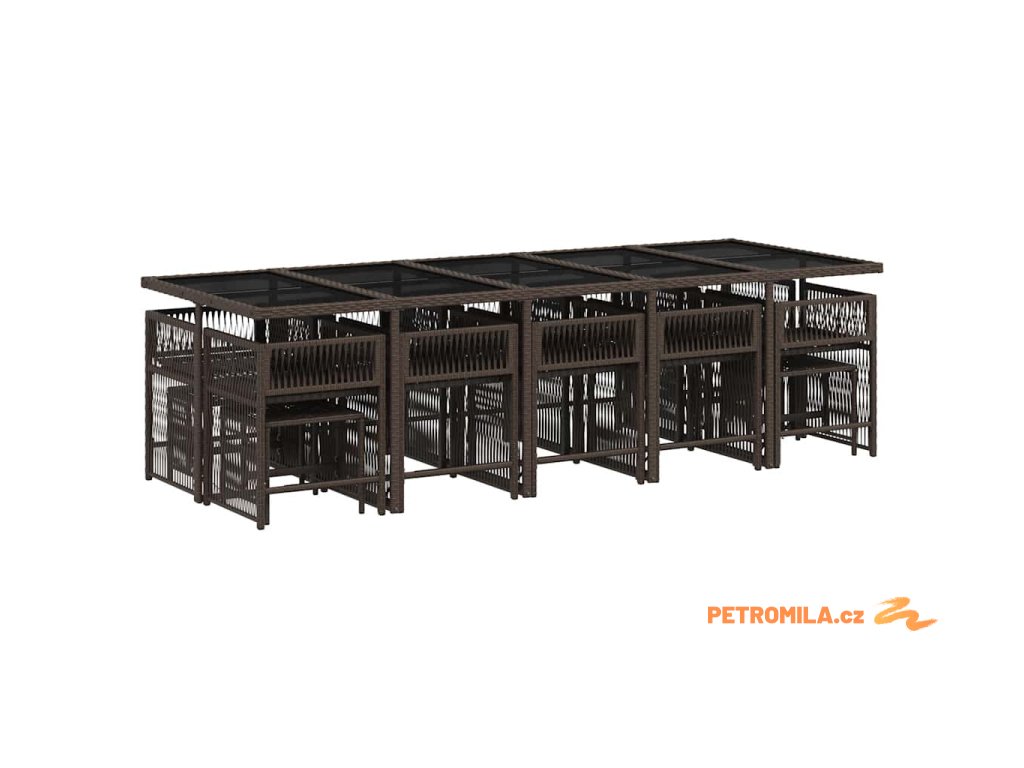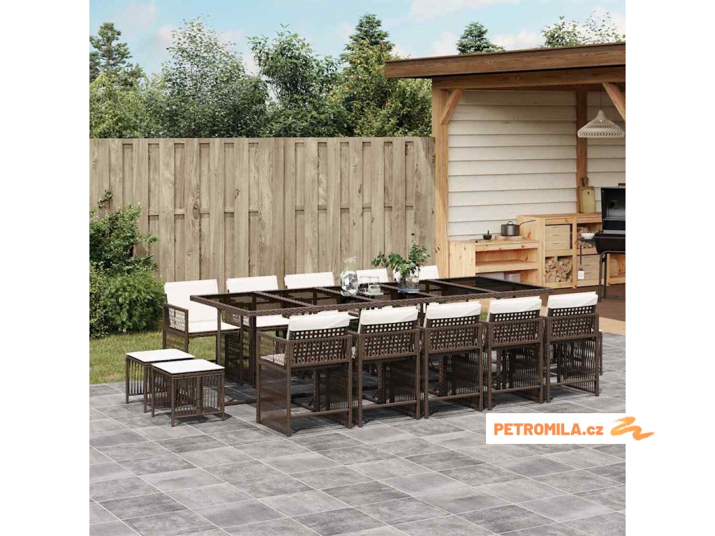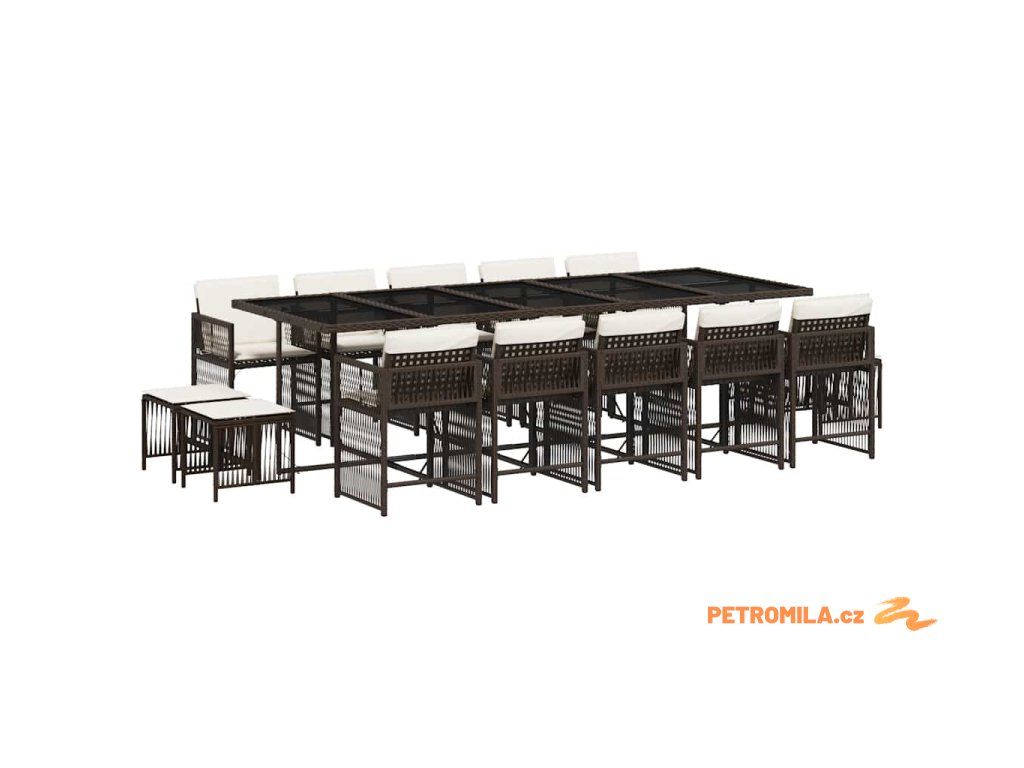 15dílný zahradní jídelní set s poduškami hnědý polyratan