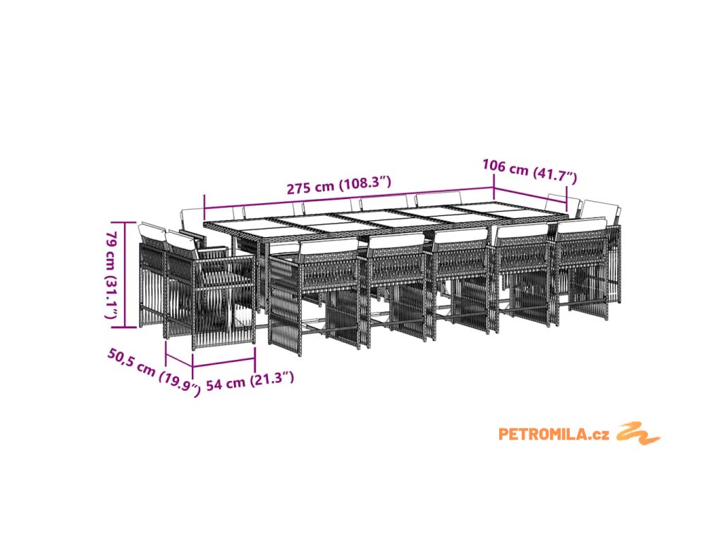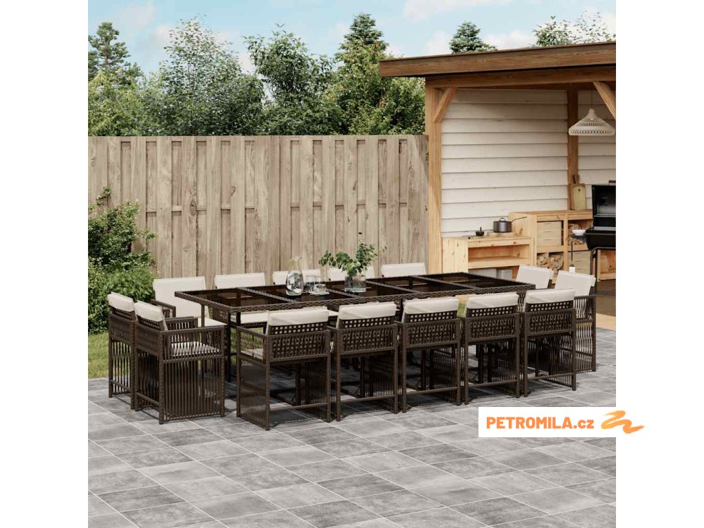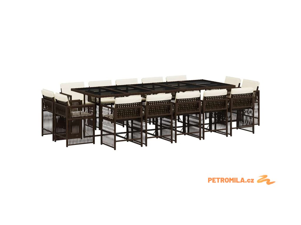 15dílný zahradní jídelní set s poduškami hnědý polyratan