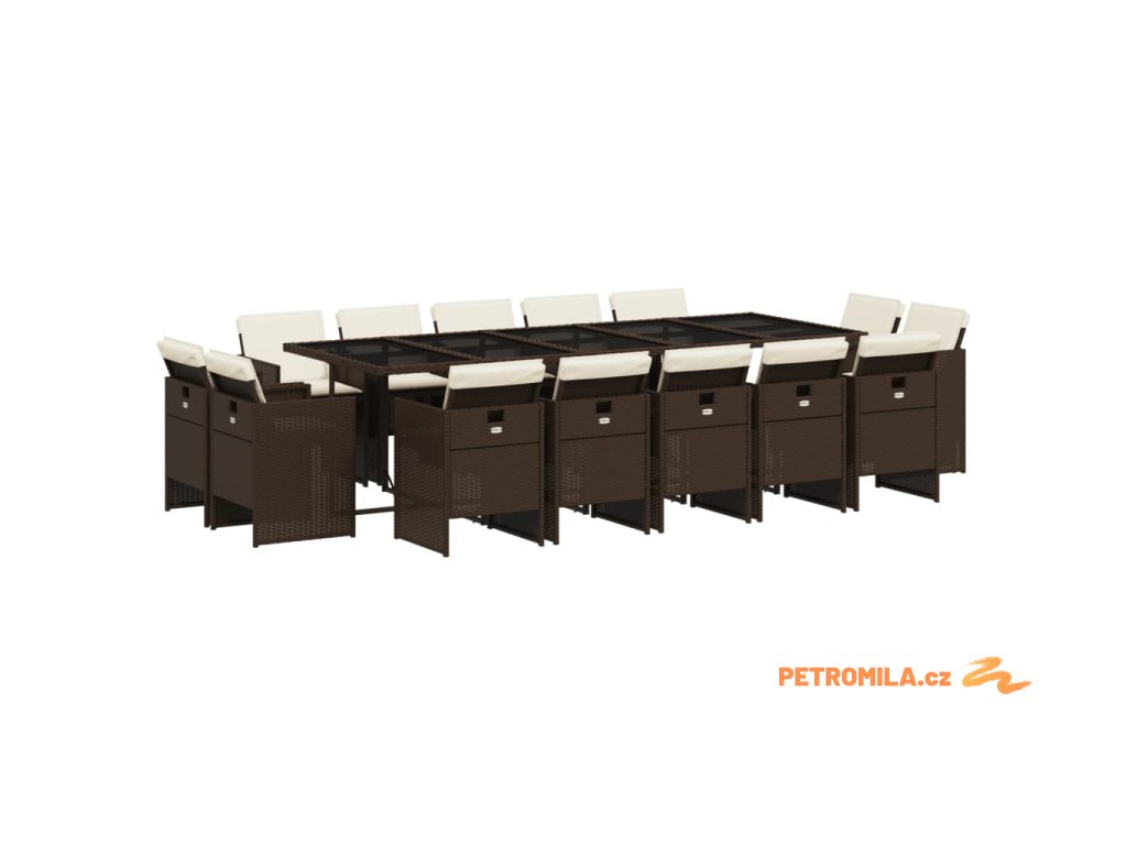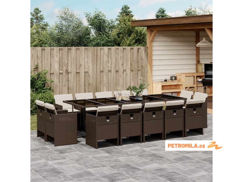 15dílný zahradní jídelní set s poduškami hnědý polyratan