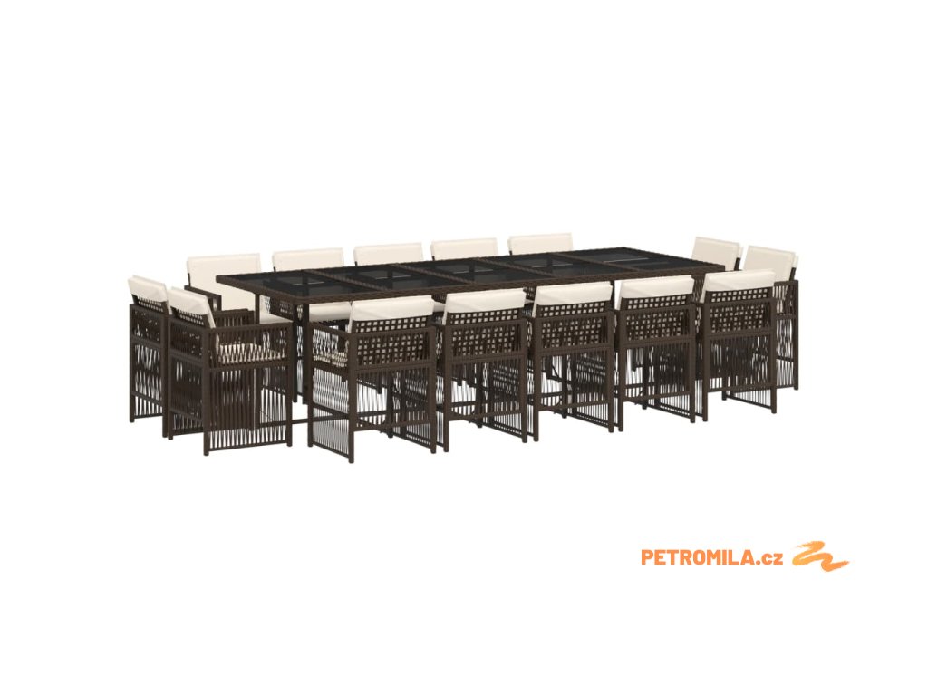 15dílný zahradní jídelní set s poduškami hnědý polyratan