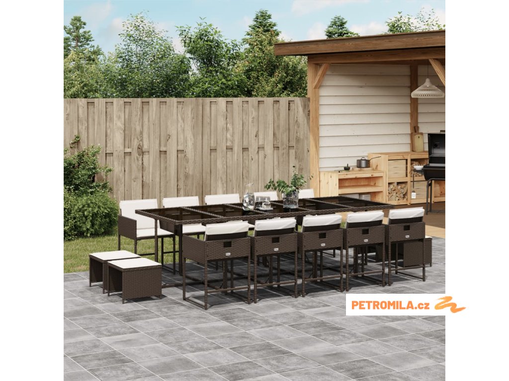 15dílný zahradní jídelní set s poduškami hnědý polyratan