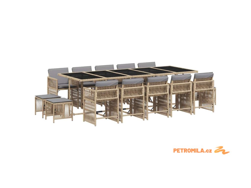 15dílný zahradní jídelní set s poduškami mix béžové polyratan