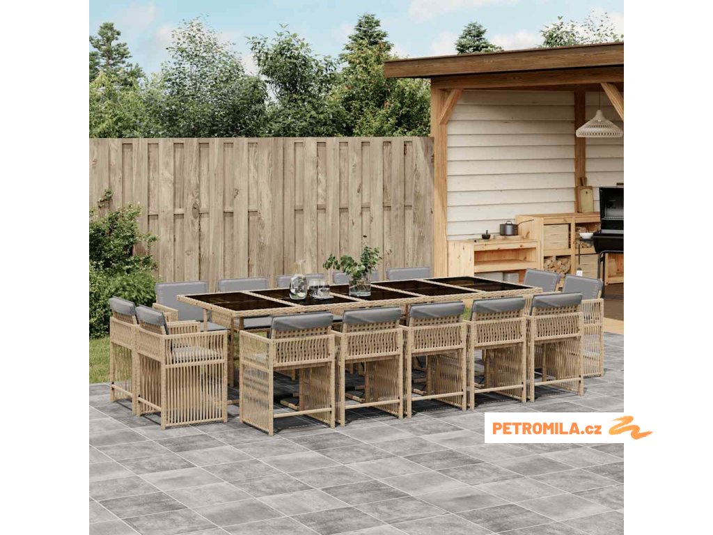 15dílný zahradní jídelní set s poduškami mix béžové polyratan