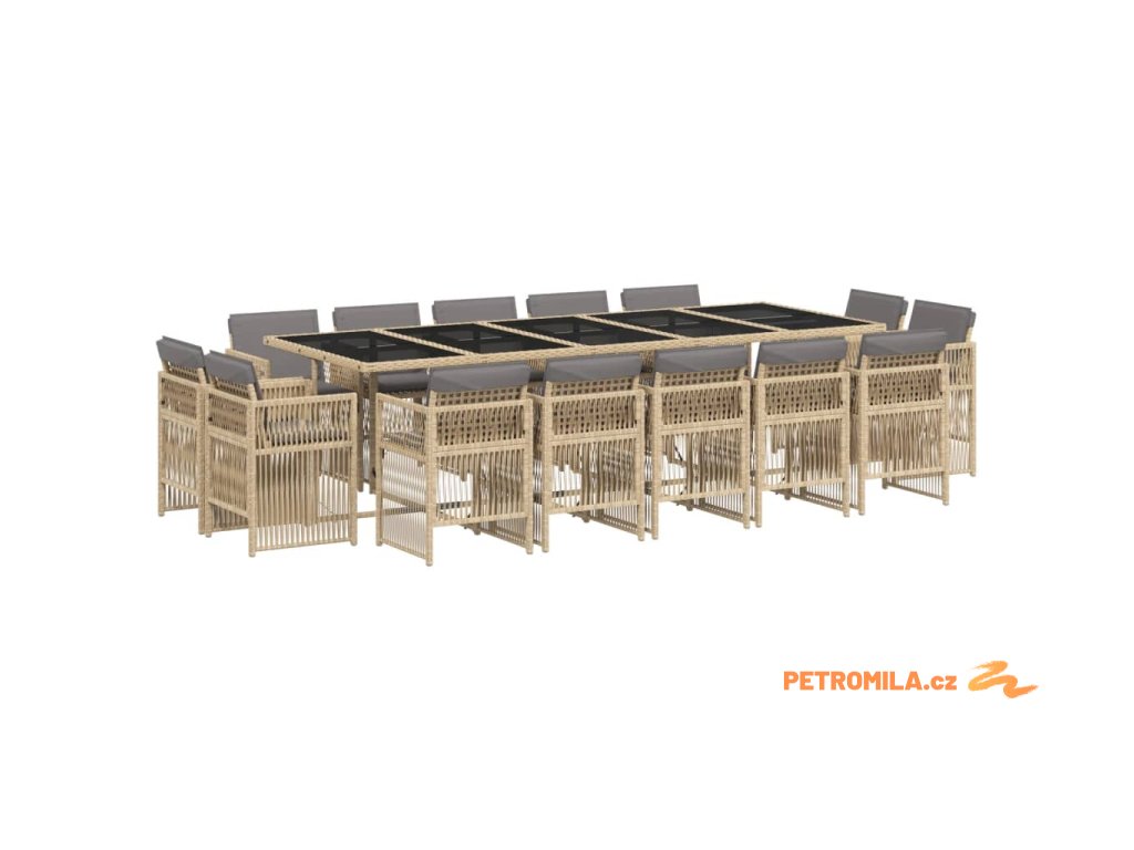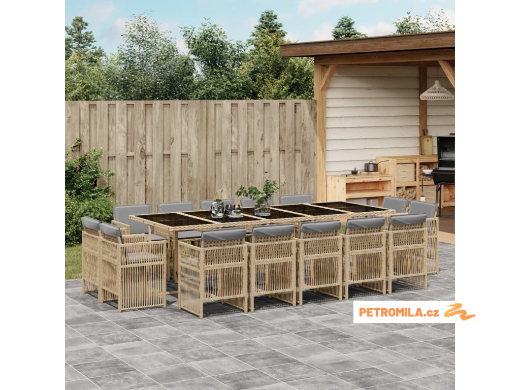 15dílný zahradní jídelní set s poduškami mix béžové polyratan