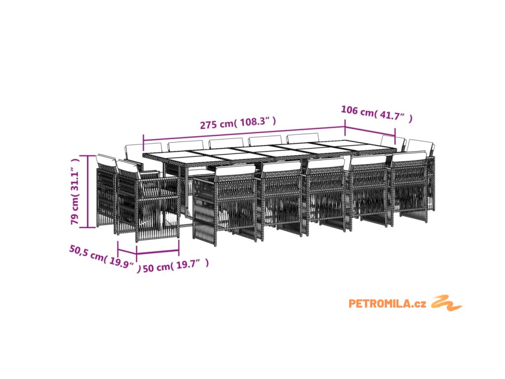 - Rozměry: 275 x 106 x 73 cm (D x Š x V)