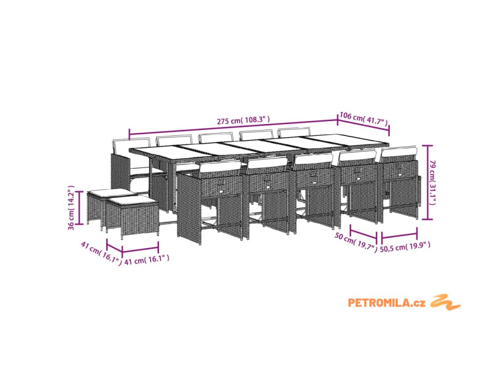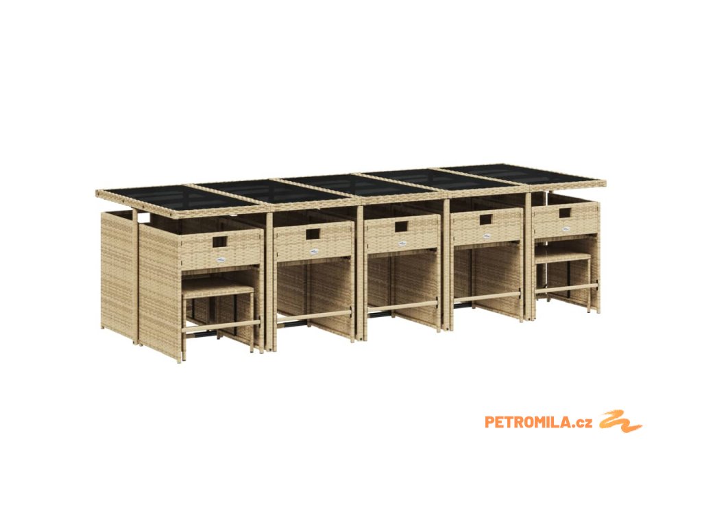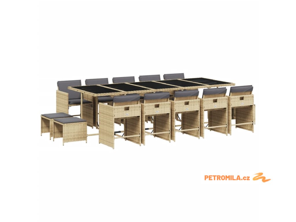 15dílný zahradní jídelní set s poduškami mix béžové polyratan