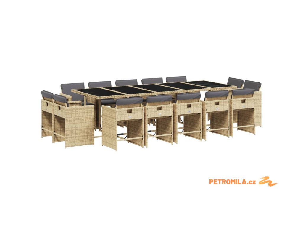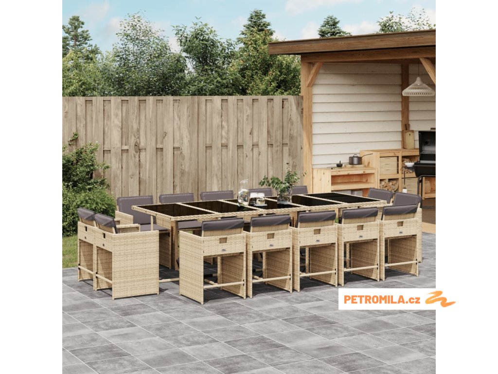 15dílný zahradní jídelní set s poduškami mix béžové polyratan