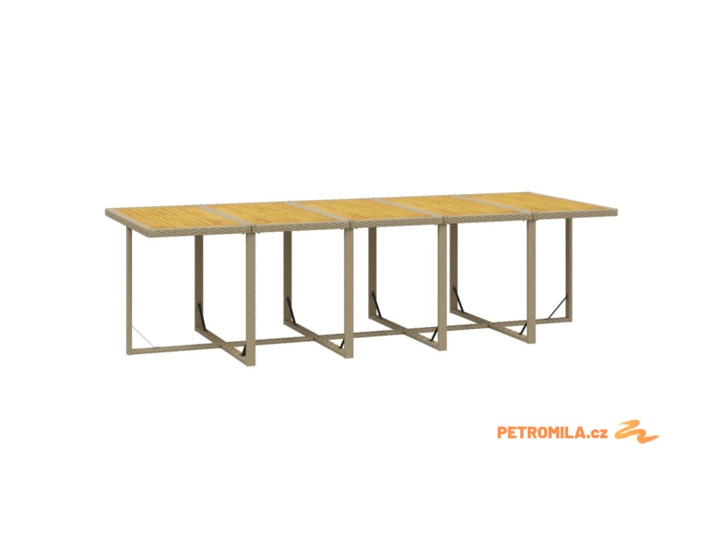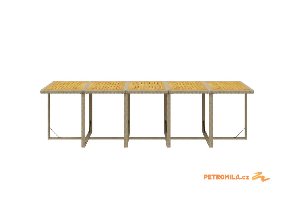 - Materiál: PE ratan, práškově lakovaná ocel, masivní akáciové dřevo s přírodní olejovou povrchovou úpravou