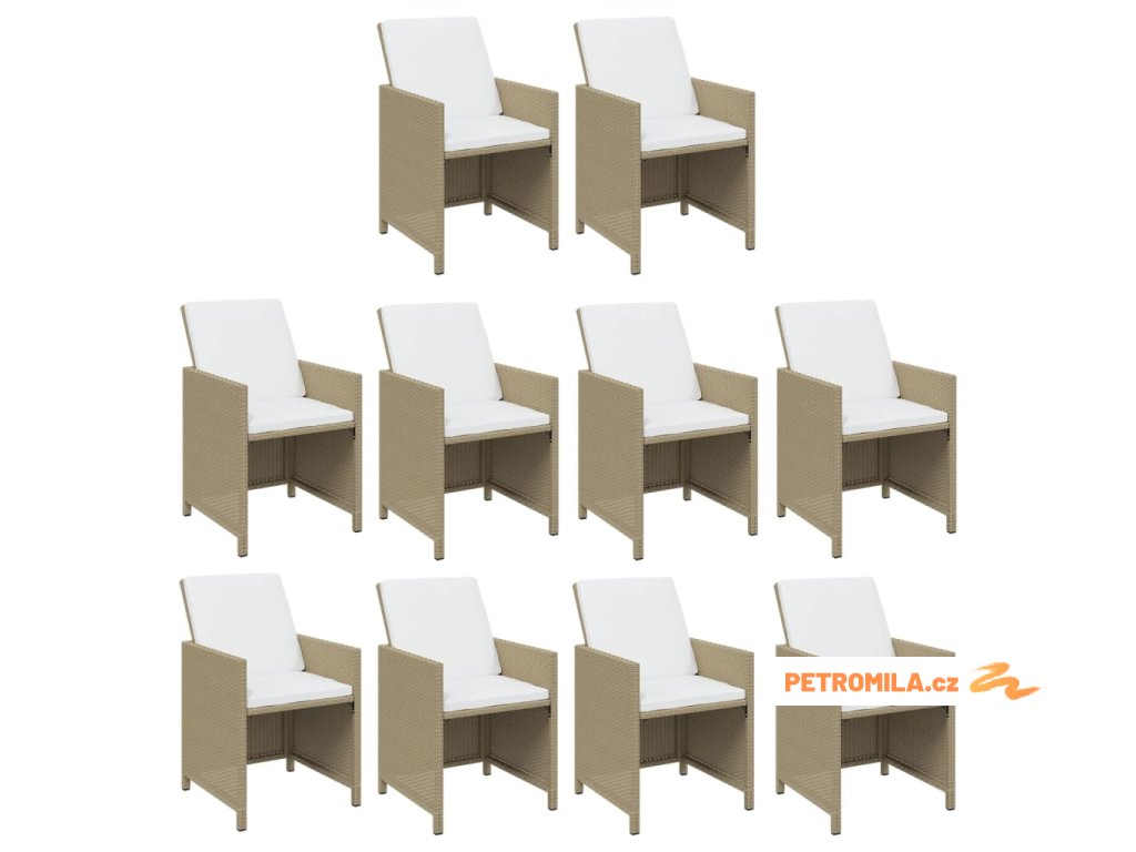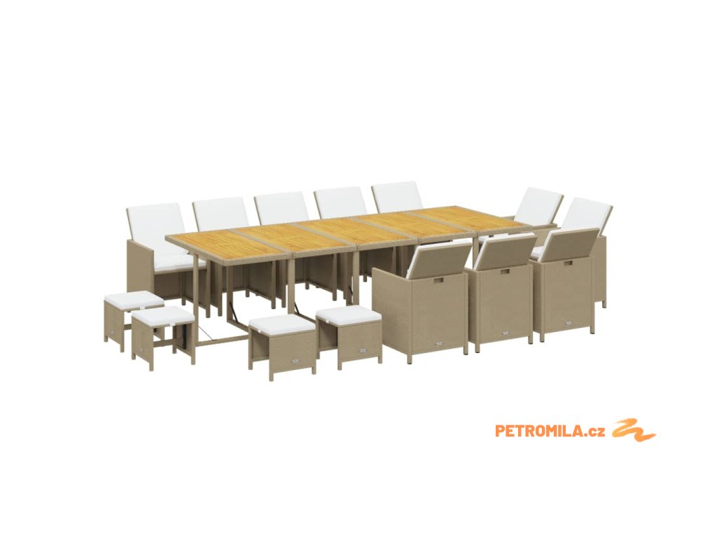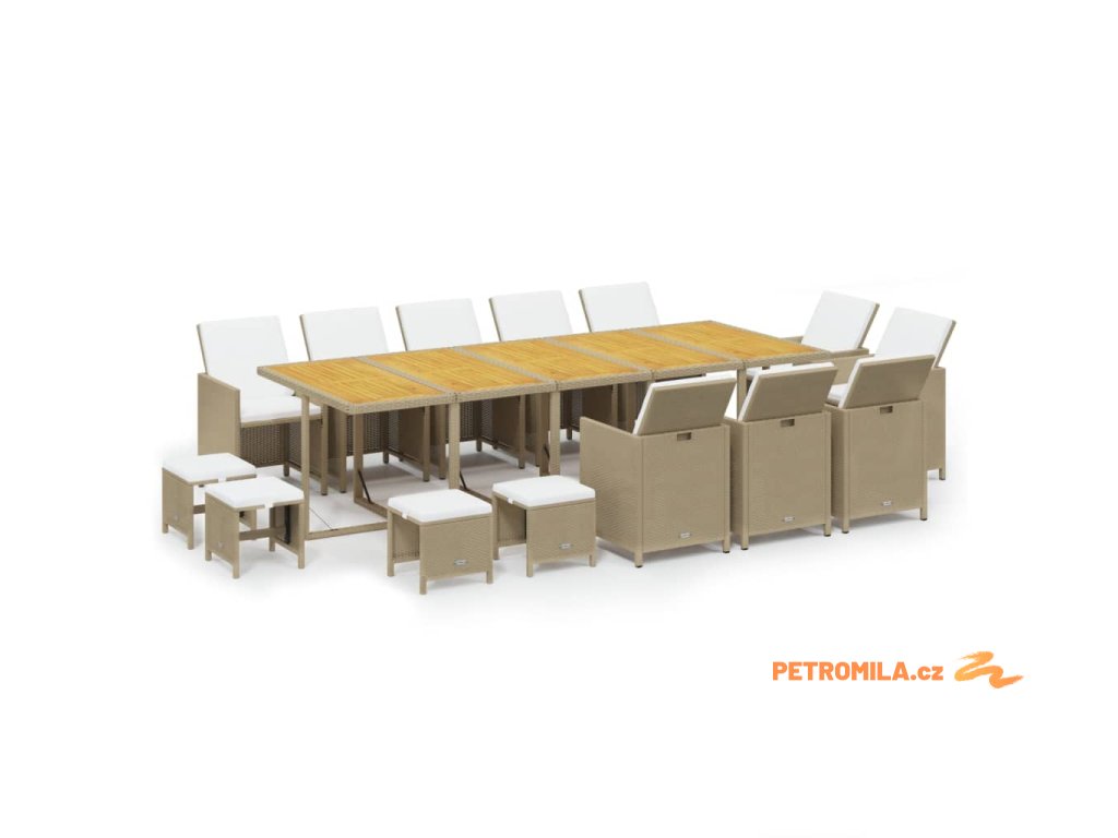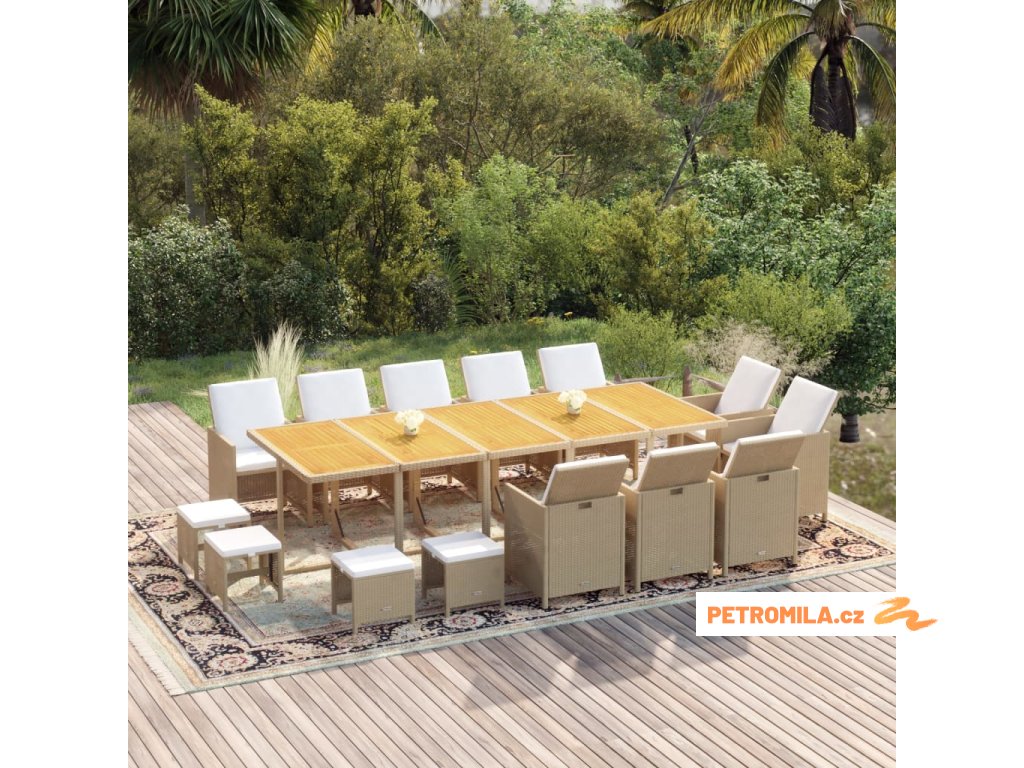 15dílný zahradní jídelní set s poduškami polyratan béžový