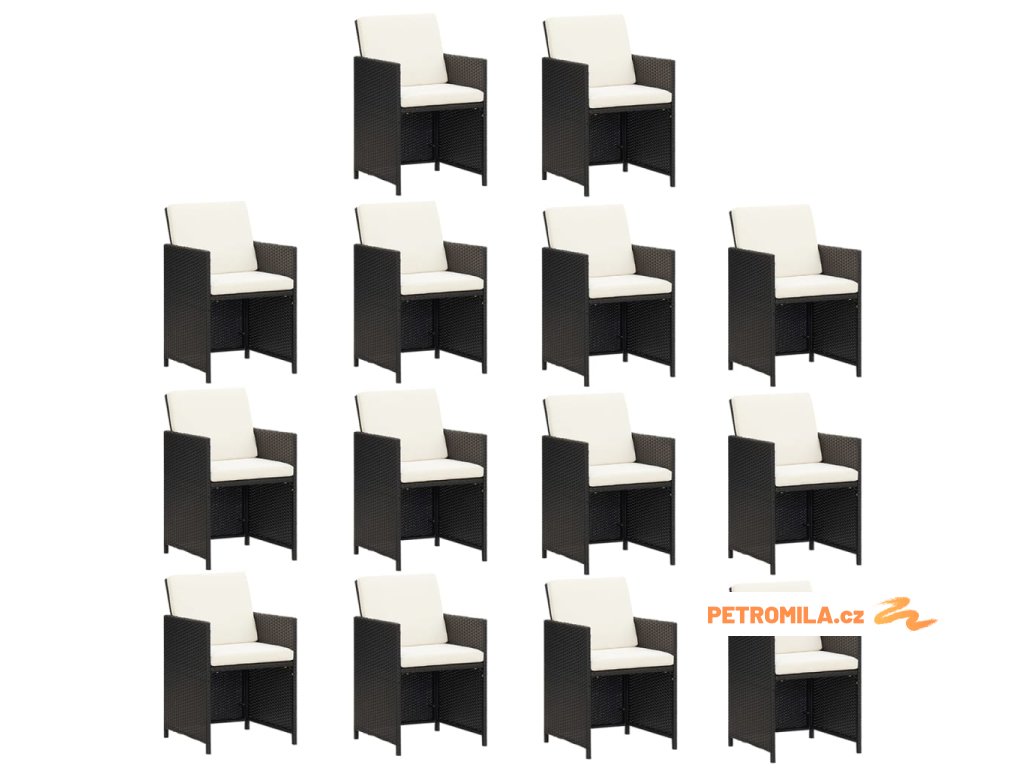 15dílný zahradní jídelní set s poduškami polyratan černý