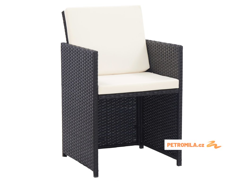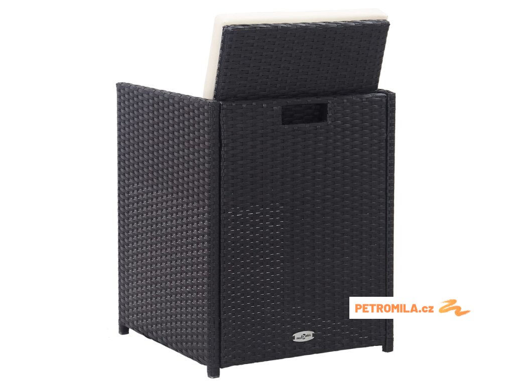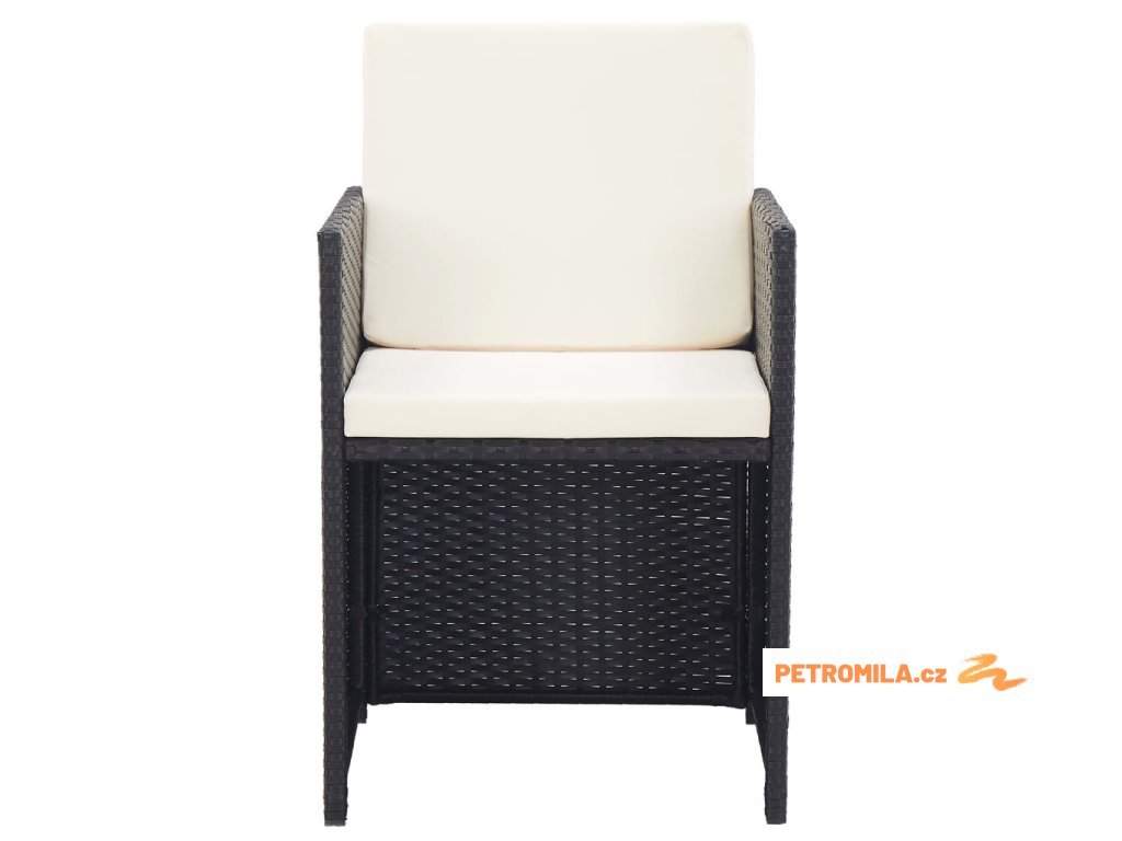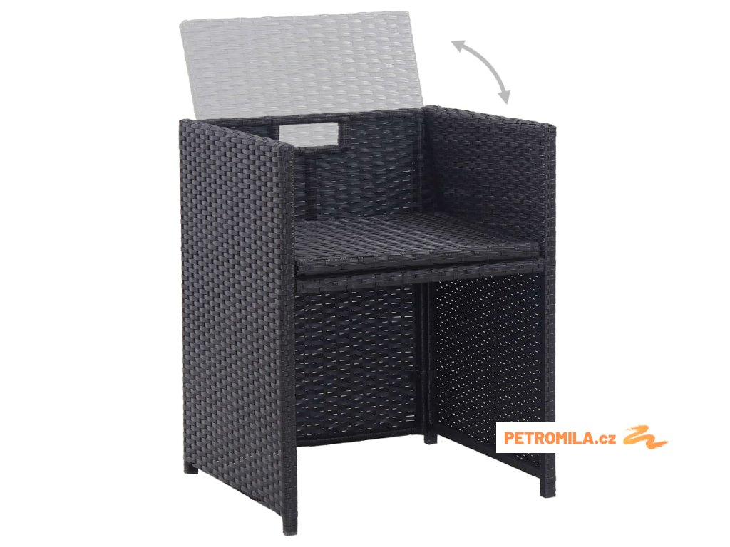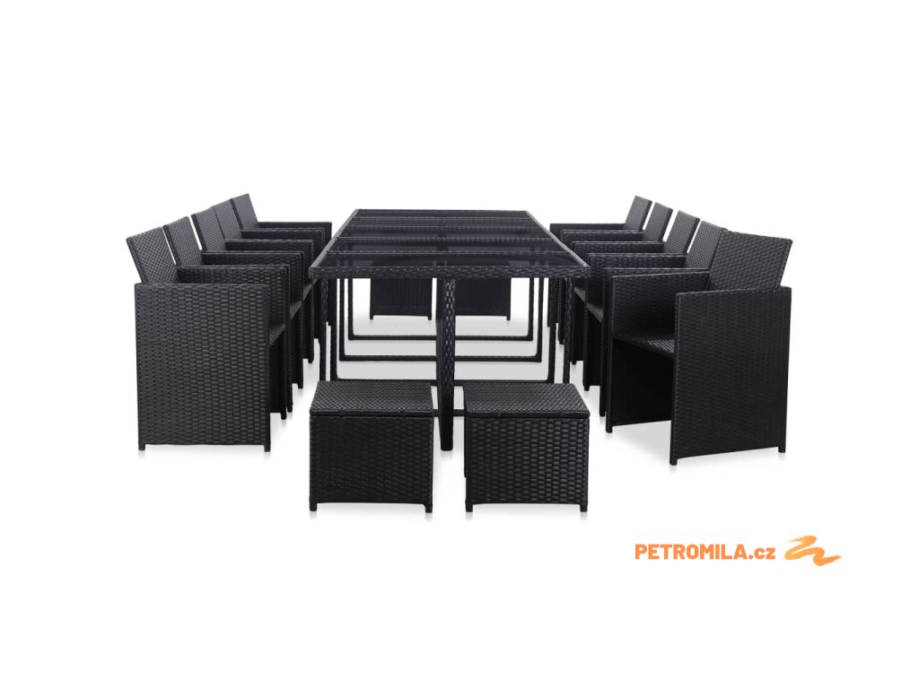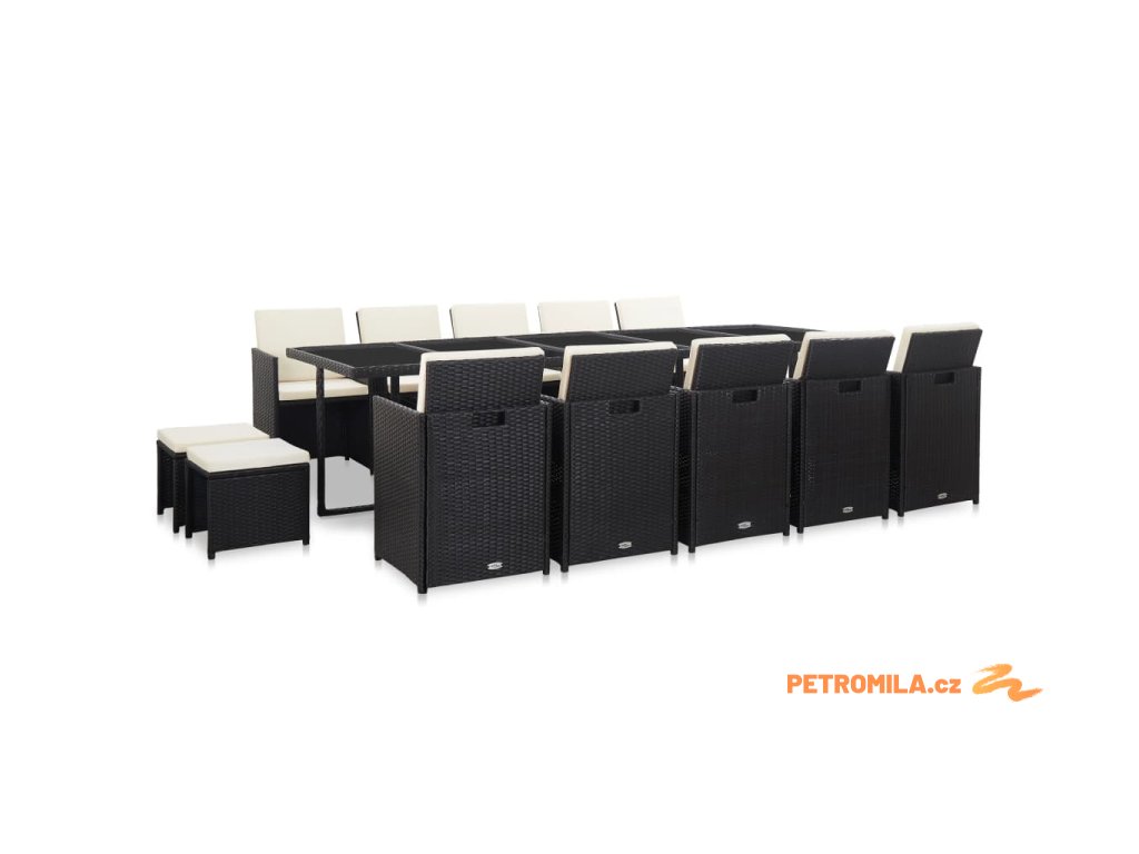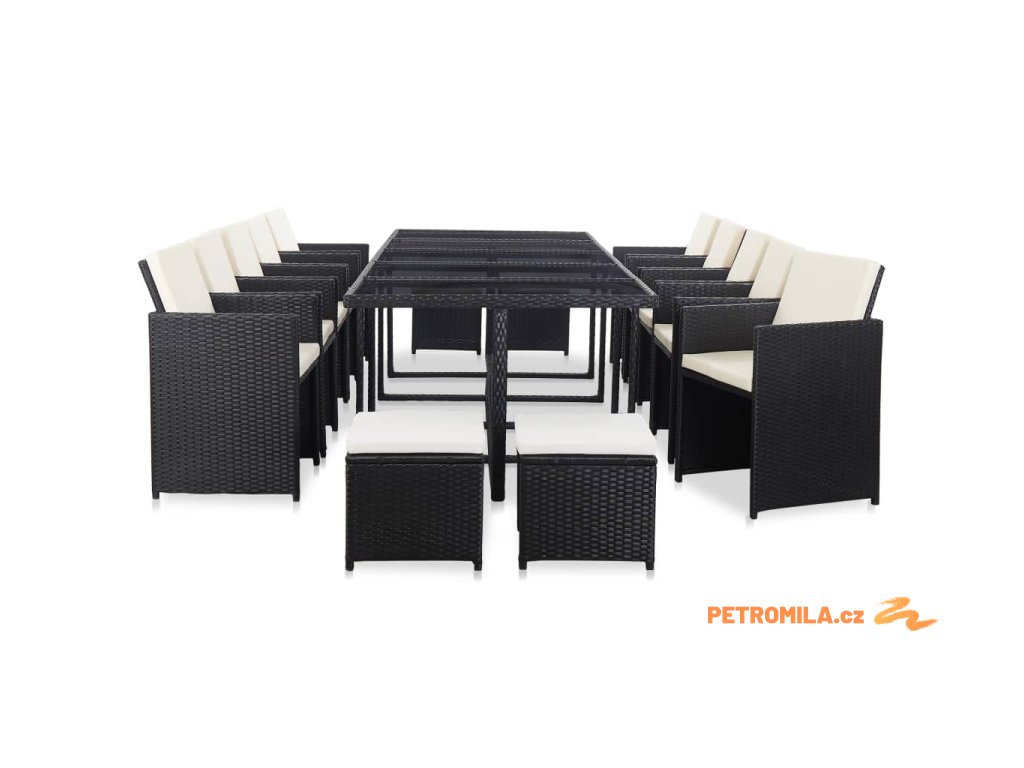 15dílný zahradní jídelní set s poduškami polyratan černý