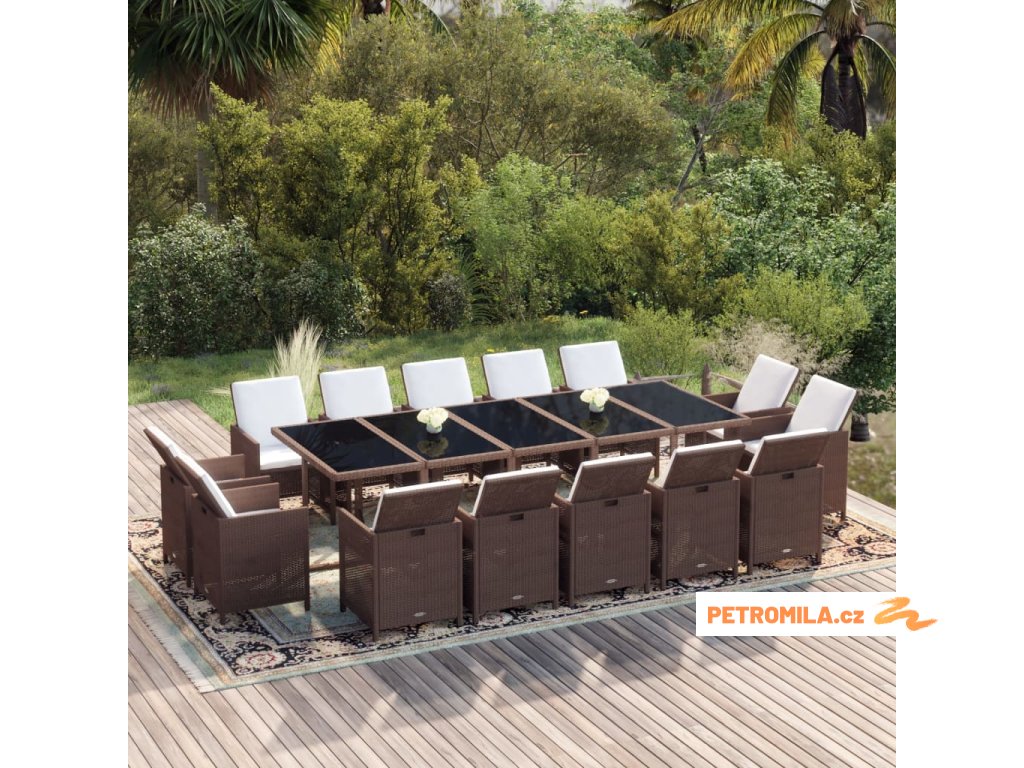 15dílný zahradní jídelní set s poduškami polyratan hnědý