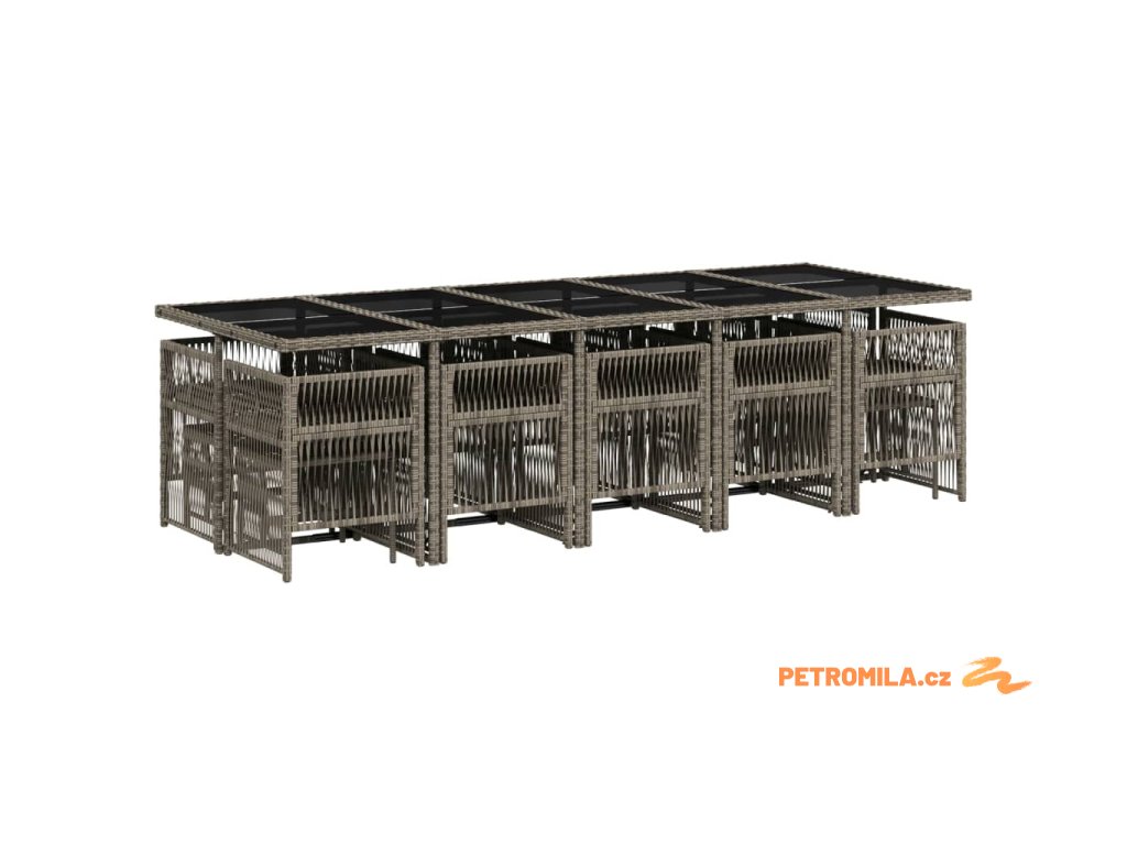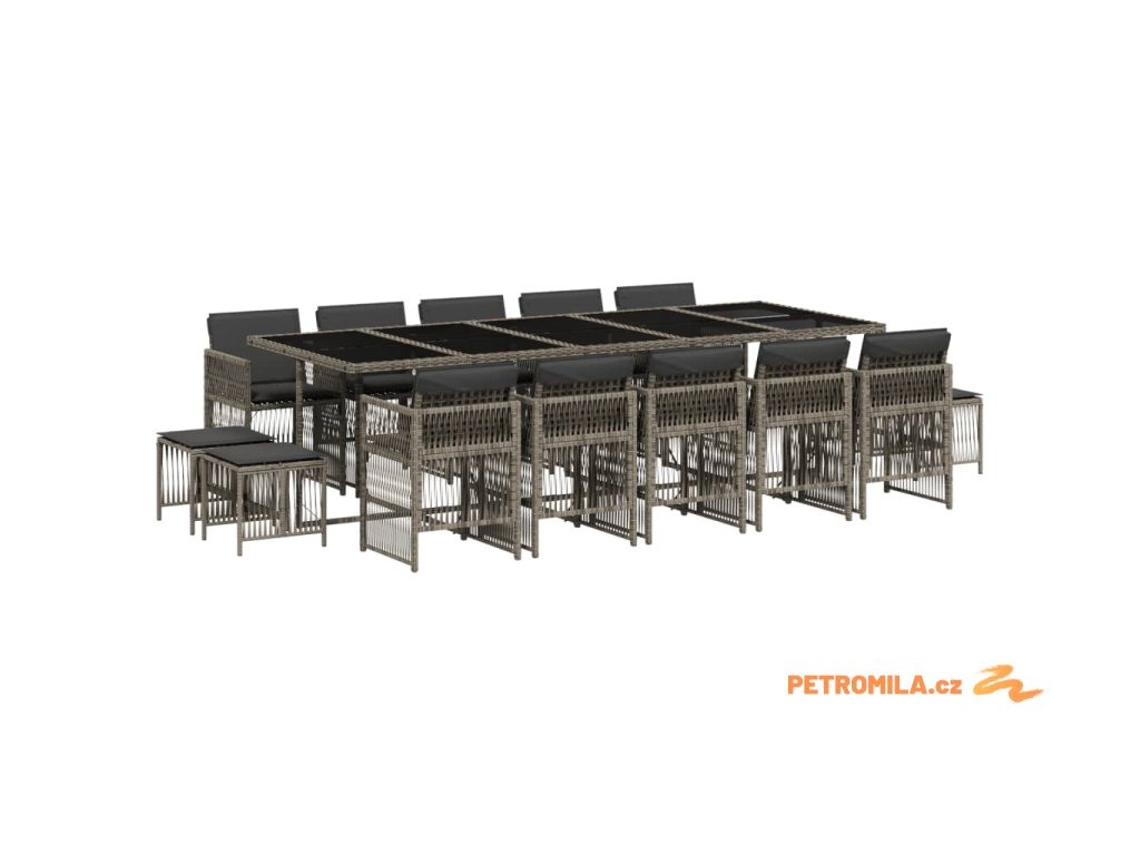 15dílný zahradní jídelní set s poduškami šedý polyratan