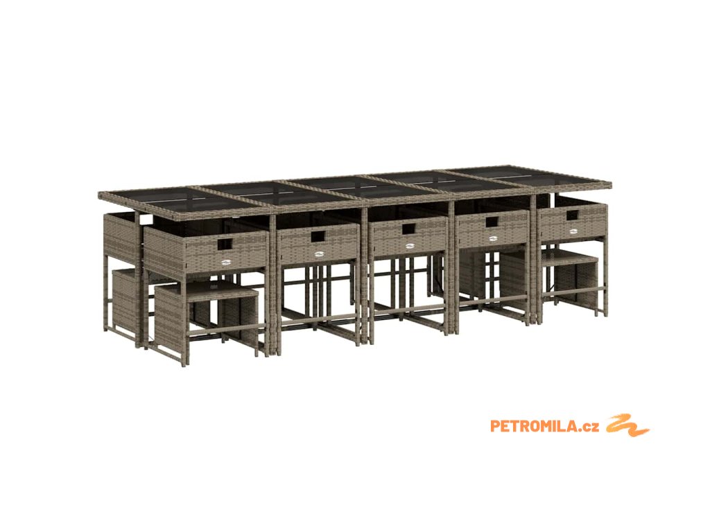 15dílný zahradní jídelní set s poduškami šedý polyratan