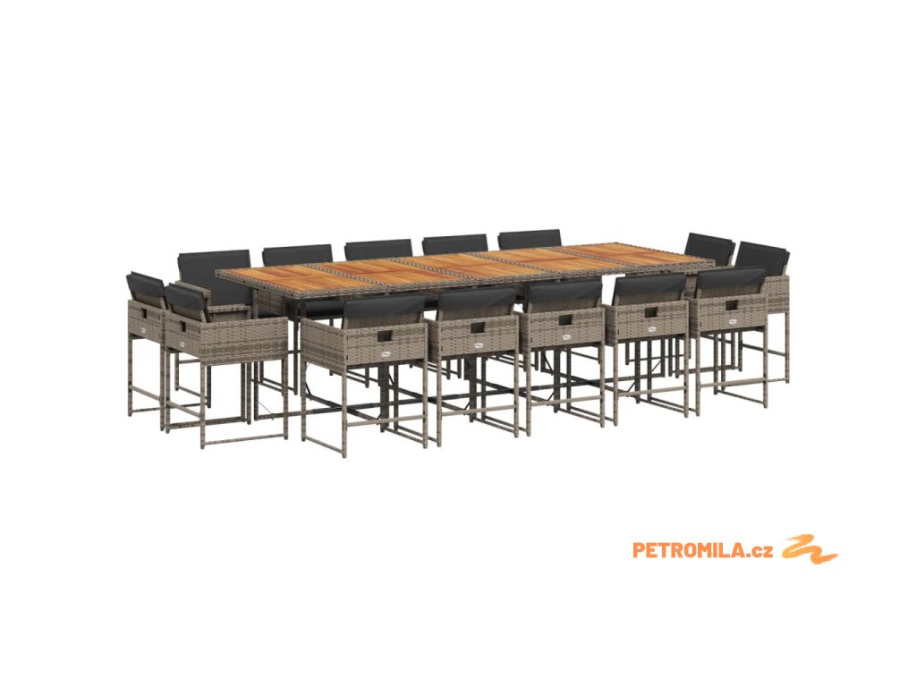 15dílný zahradní jídelní set s poduškami šedý polyratan