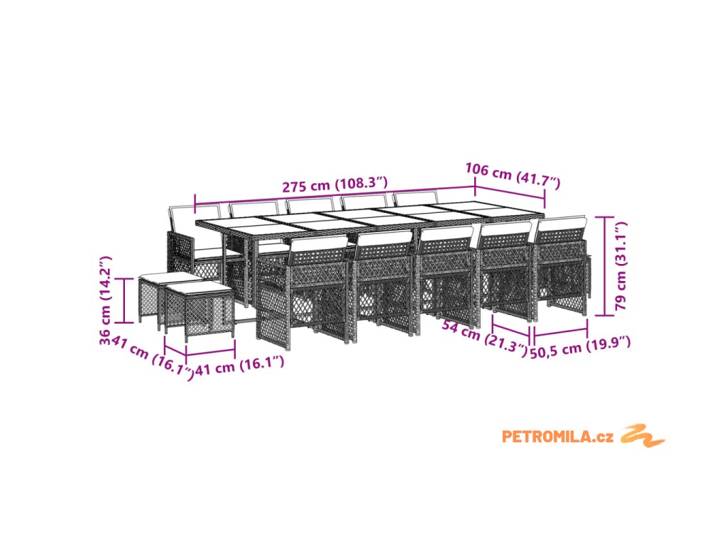 - Rozměry zahradní stolička: 41 x 41 x 36 cm (Š x H x V)