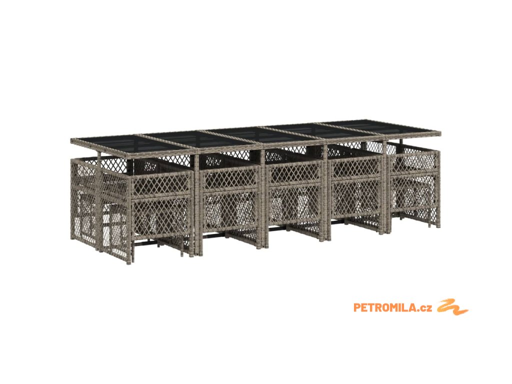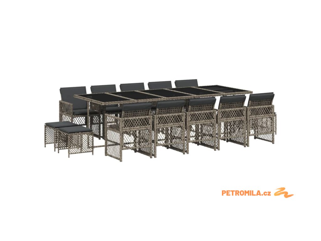 15dílný zahradní jídelní set s poduškami šedý polyratan