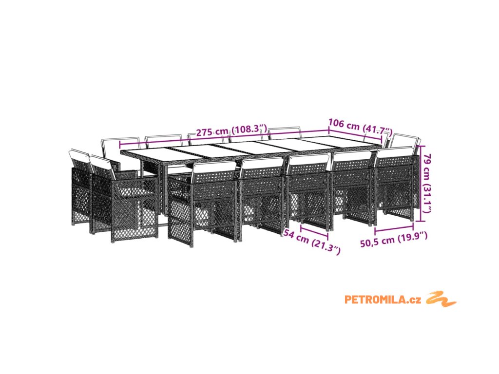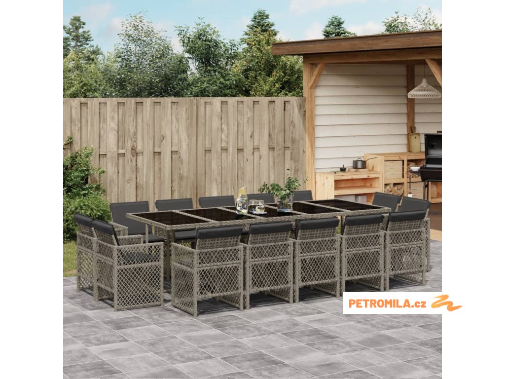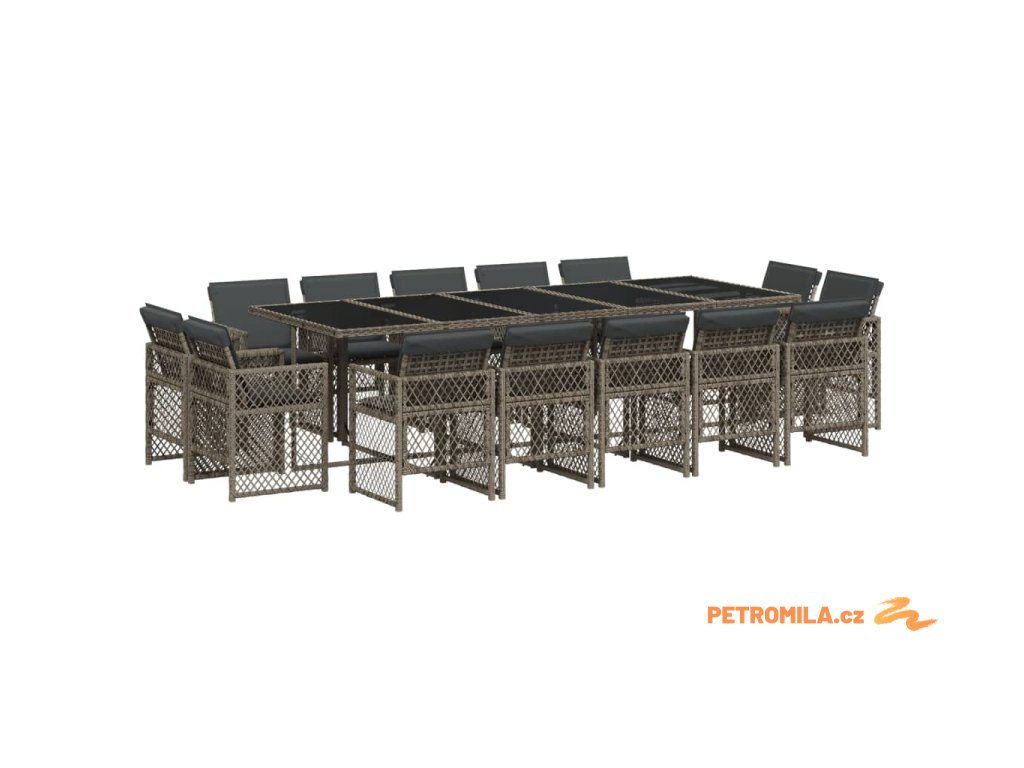15dílný zahradní jídelní set s poduškami šedý polyratan
