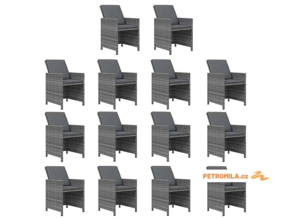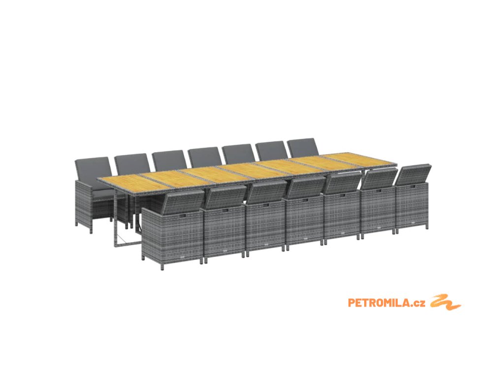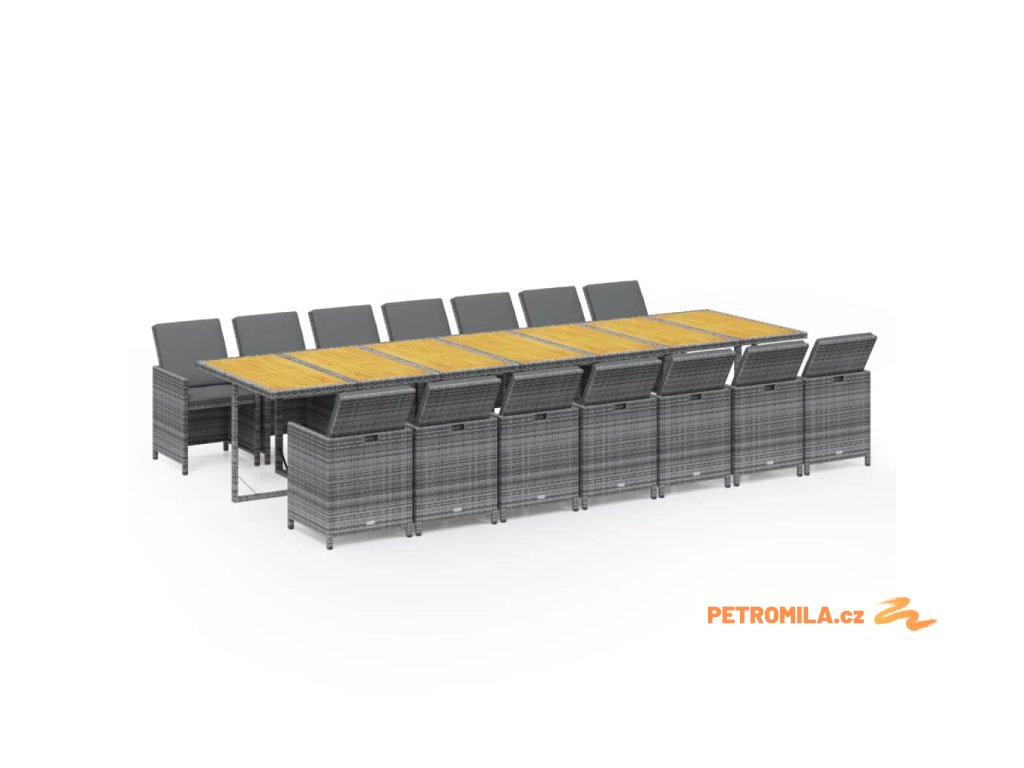 15dílný zahradní jídelní set s poduškami šedý polyratan