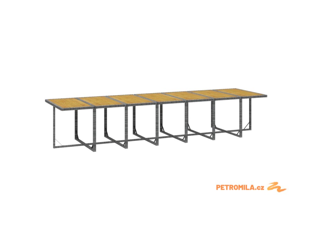 - Materiál: PE ratan, práškově lakovaná ocel, masivní akáciové dřevo s přírodní olejovou povrchovou úpravou