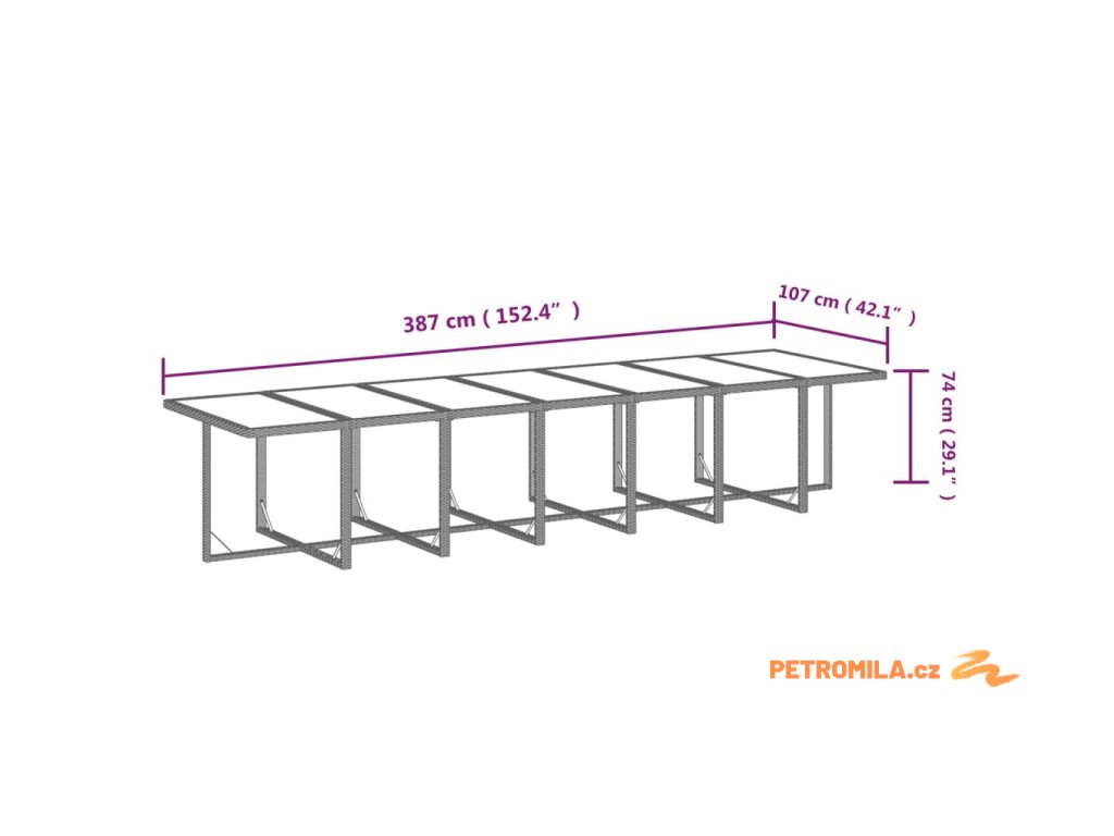 - Rozměry: 387 x 107 x 74 cm (D x Š x V)