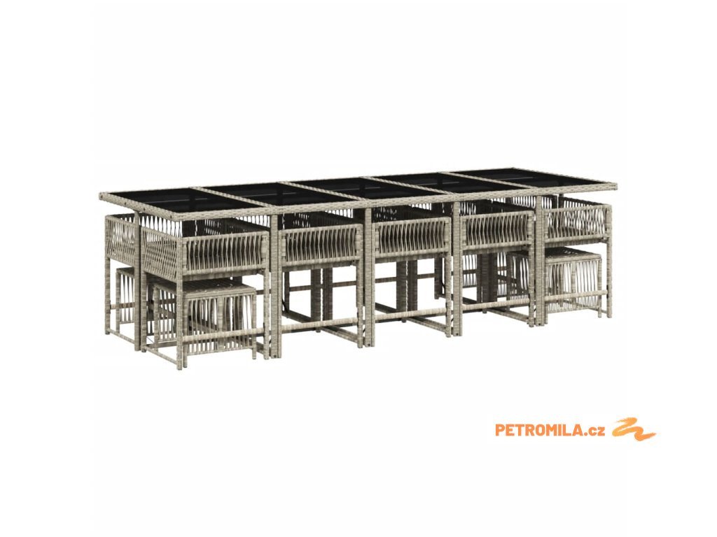 15dílný zahradní jídelní set s poduškami světle šedý polyratan