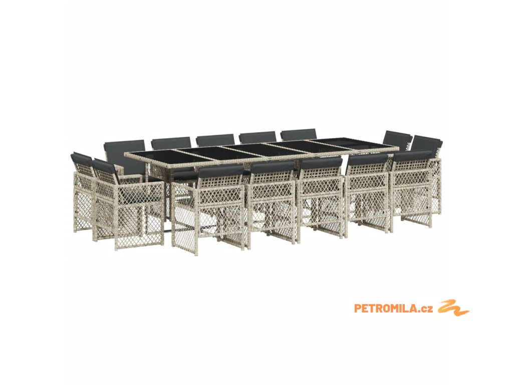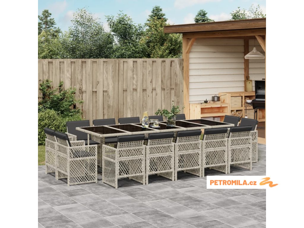 15dílný zahradní jídelní set s poduškami světle šedý polyratan