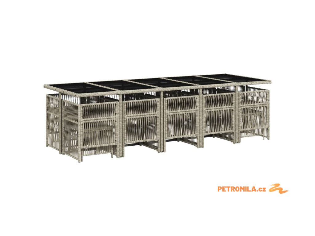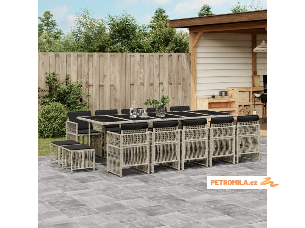 15dílný zahradní jídelní set s poduškami světle šedý polyratan