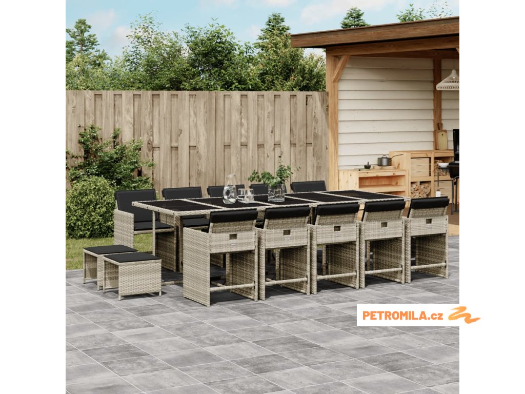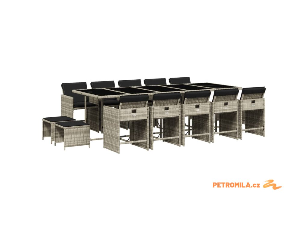15dílný zahradní jídelní set s poduškami světle šedý polyratan