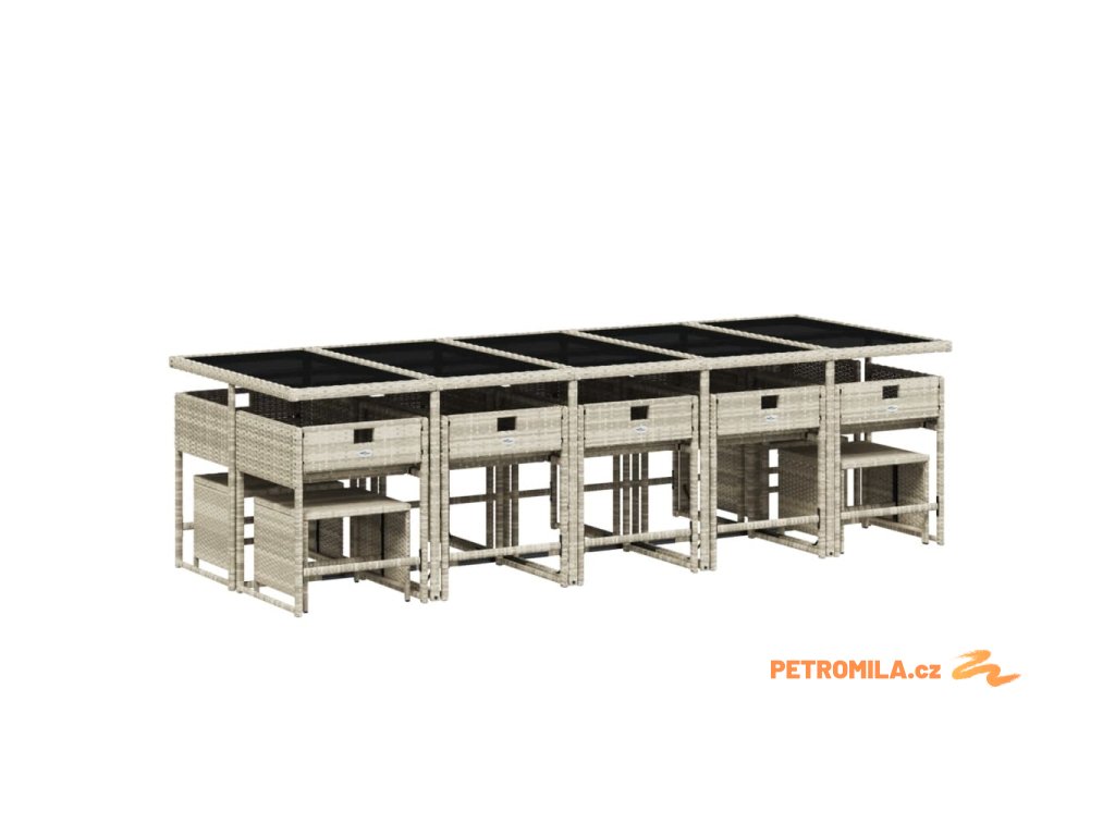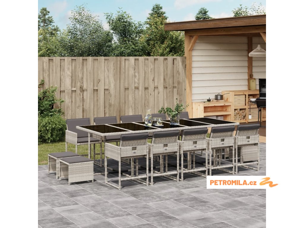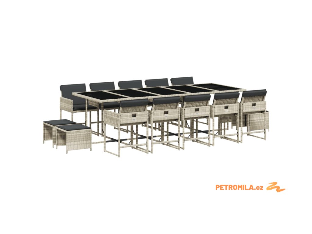 15dílný zahradní jídelní set s poduškami světle šedý polyratan