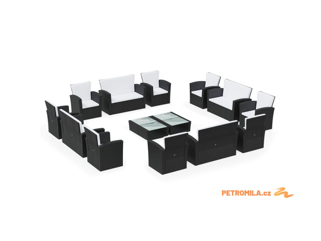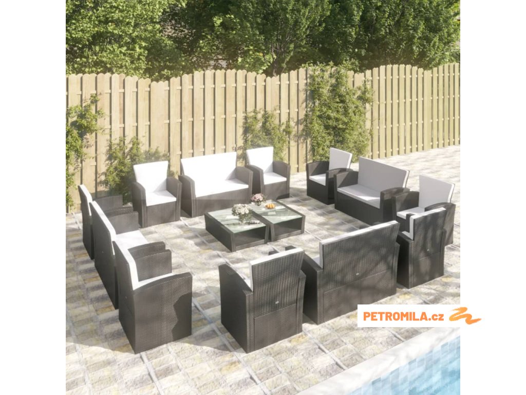 16dílná zahradní sedací souprava s poduškami polyratan černá