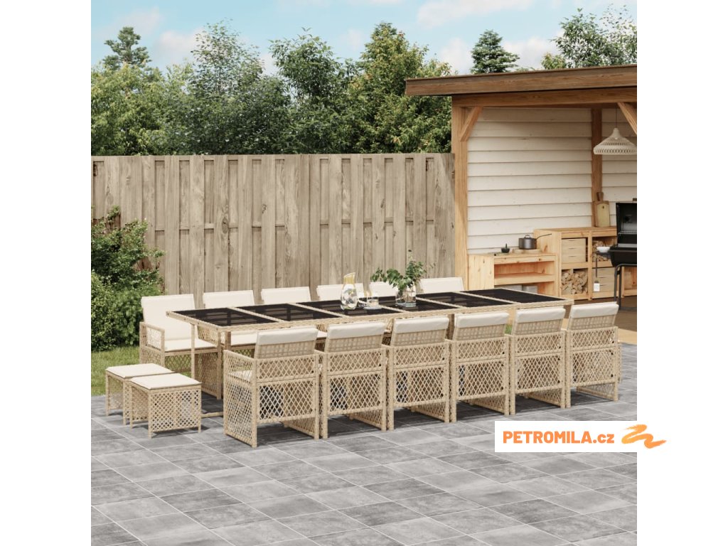 17dílný zahradní jídelní set s poduškami béžový polyratan