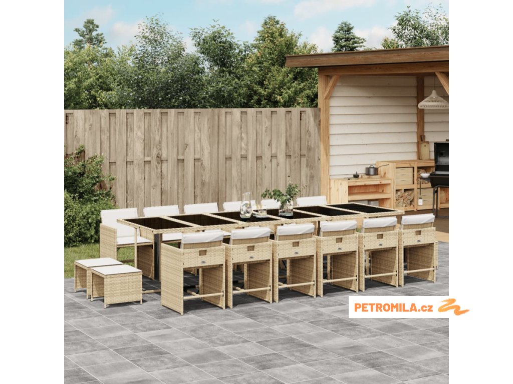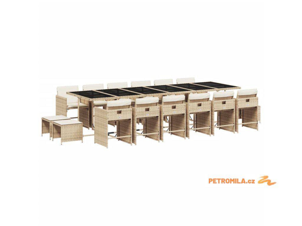 17dílný zahradní jídelní set s poduškami béžový polyratan
