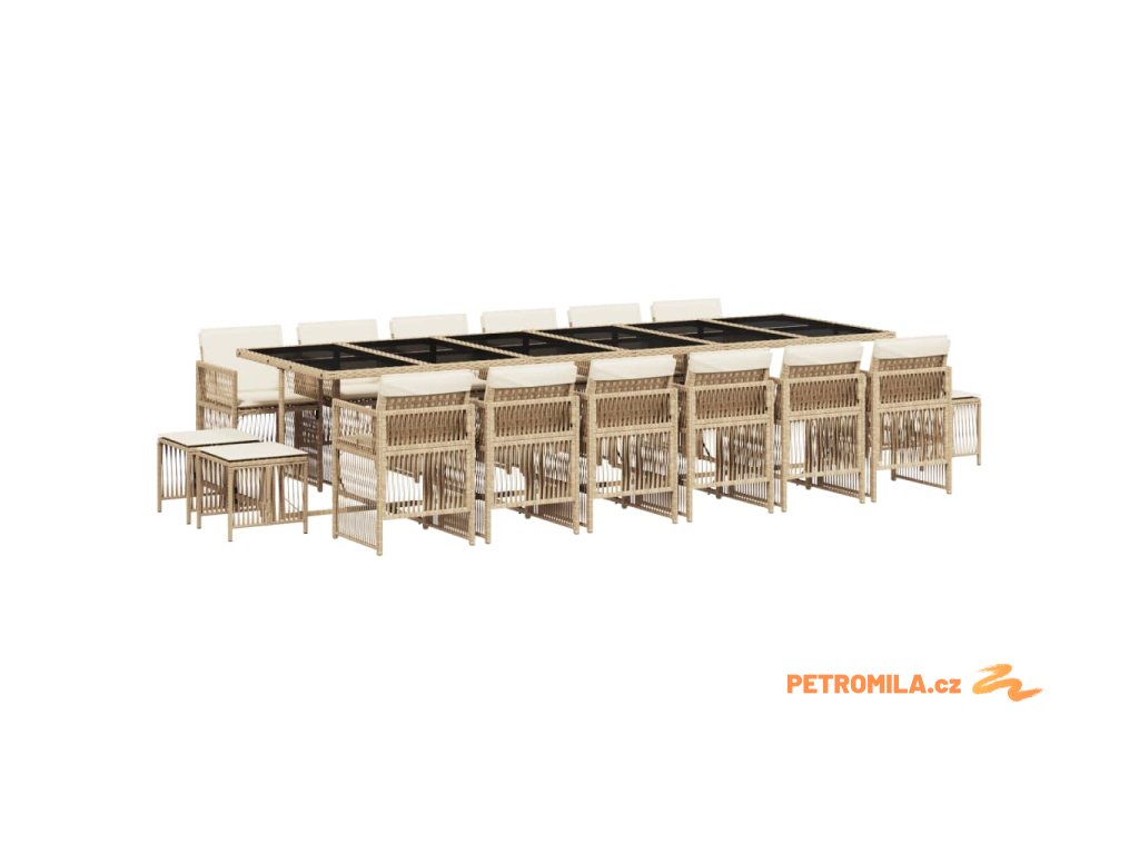 17dílný zahradní jídelní set s poduškami béžový polyratan