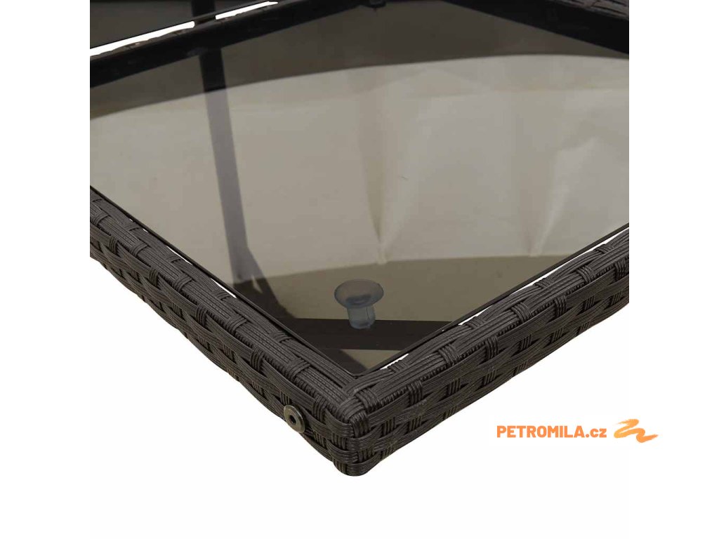 - Materiál: PE ratan, práškově lakovaná ocel, tvrzené sklo