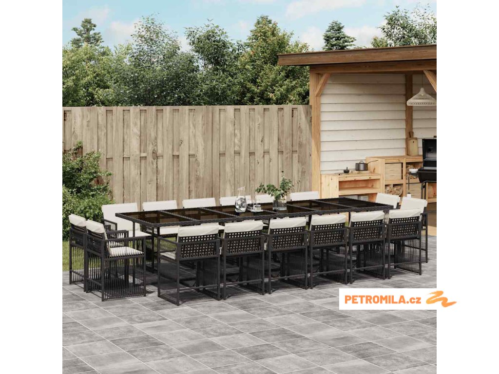 17dílný zahradní jídelní set s poduškami černý polyratan