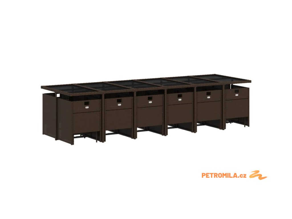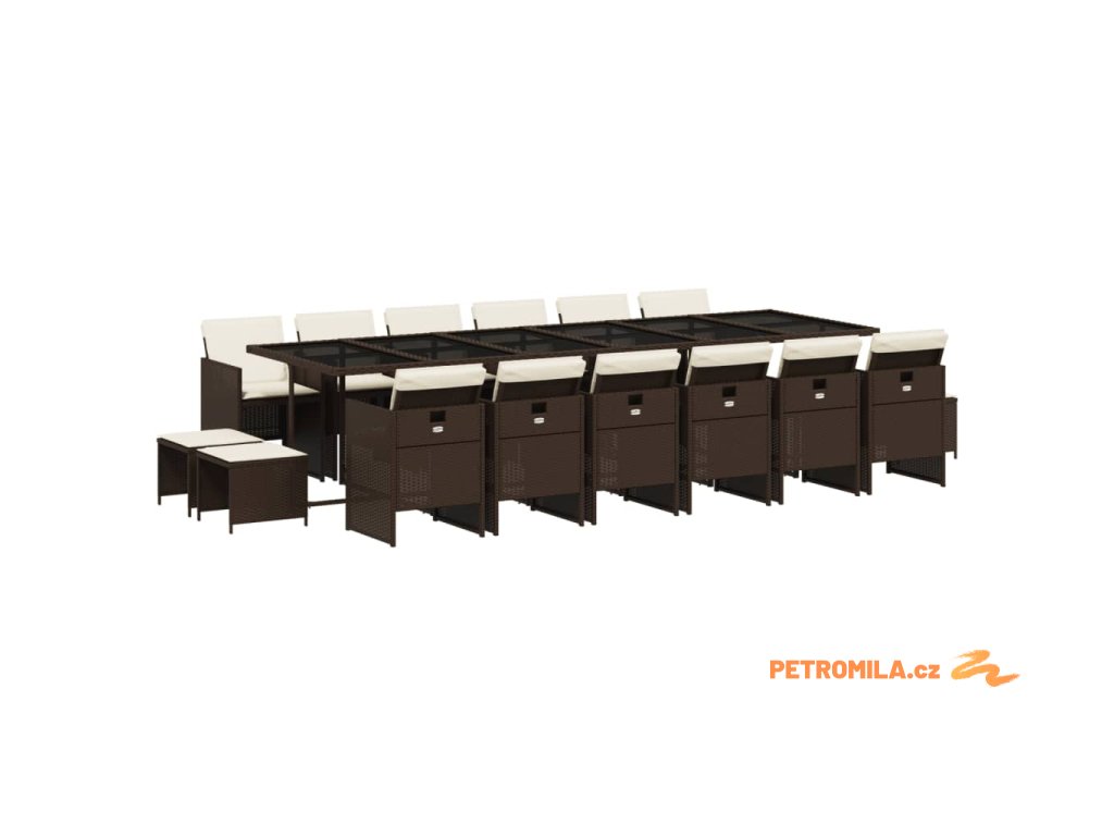 17dílný zahradní jídelní set s poduškami hnědý polyratan